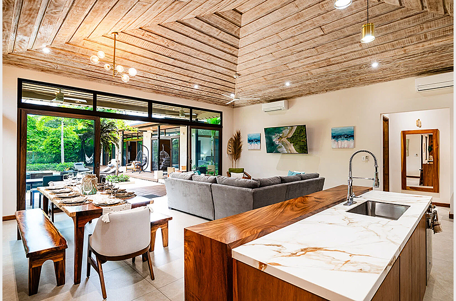 This villa is nestled within the gated community of Tamarindo Park, a space dedicated to preserving the area's flora and fauna while offering residents and guests the chance to enjoy its natural beauty.