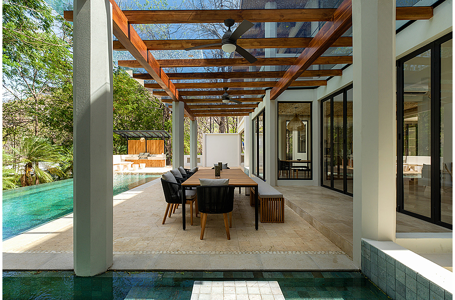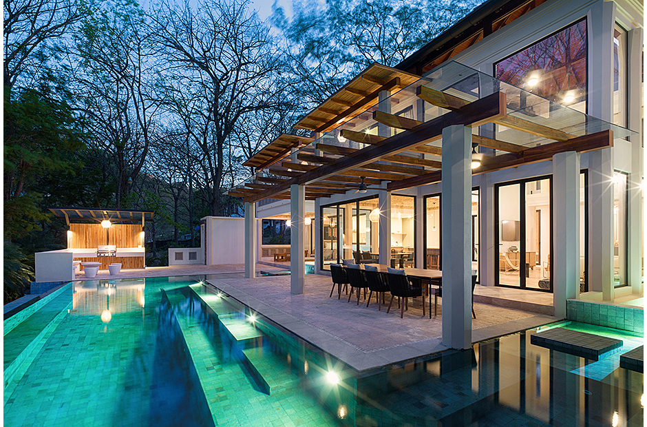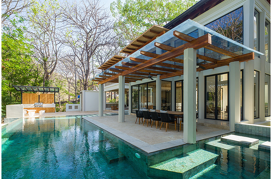 Featuring over 8000 ft. the home is comprised of four master suites, one guestroom, and one bunk room…all with en-suite bathrooms. Large and spacious outdoor areas overlook the 4 sided infinity pool and forest beyond.