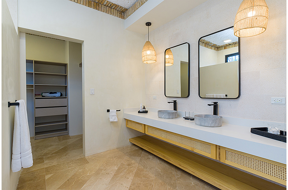 This villa is located within a 3 minute walk to the beach but its up a large hill. Most guests either rent a golf cart or take a taxi to the beach.