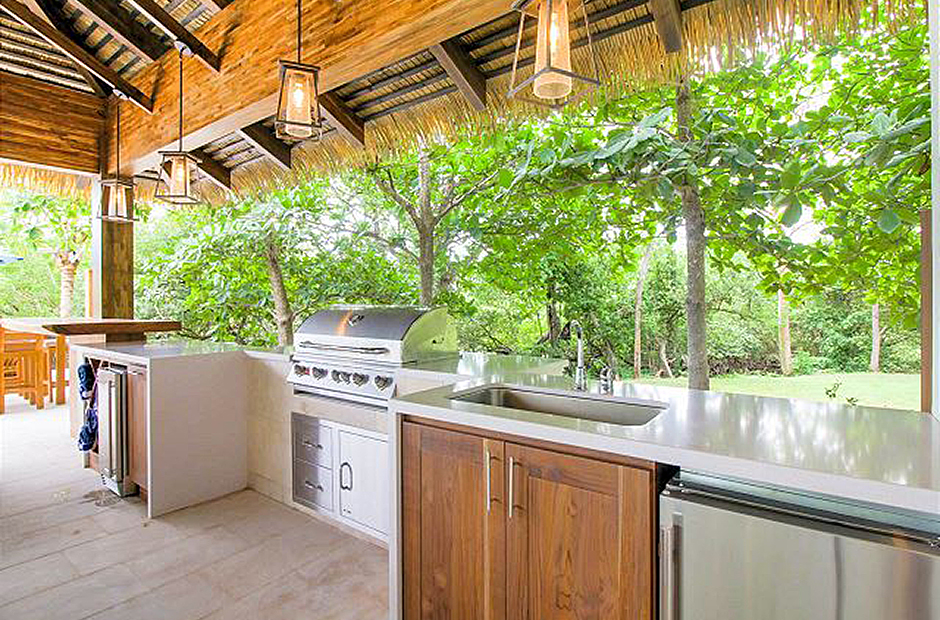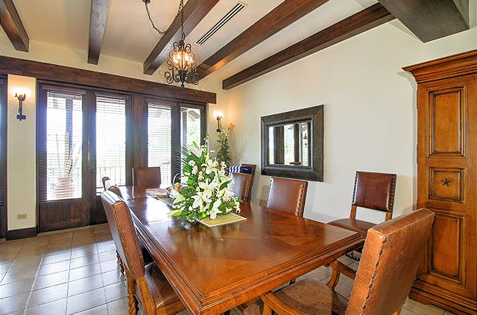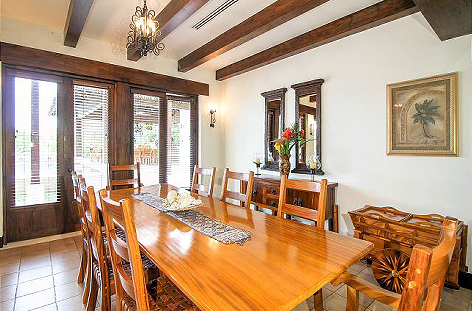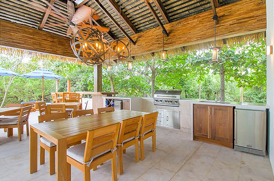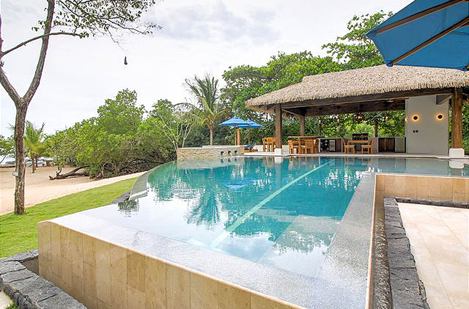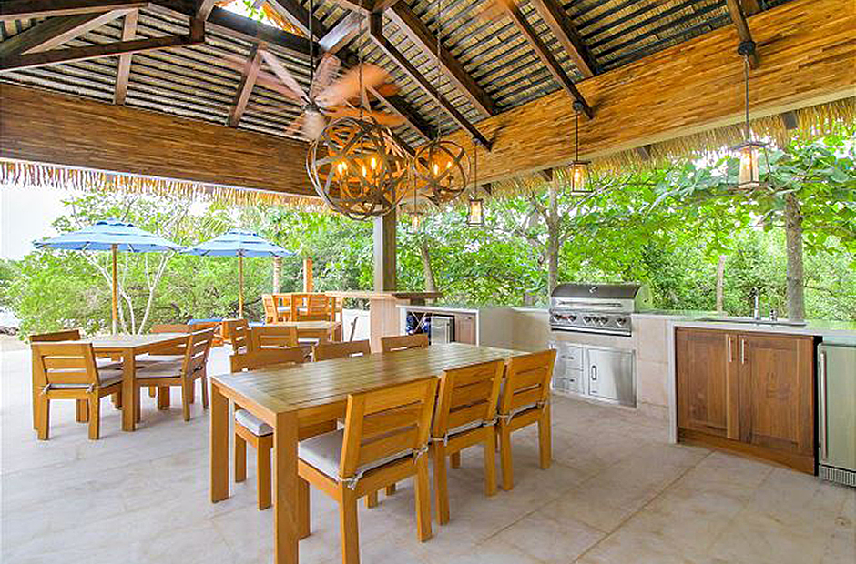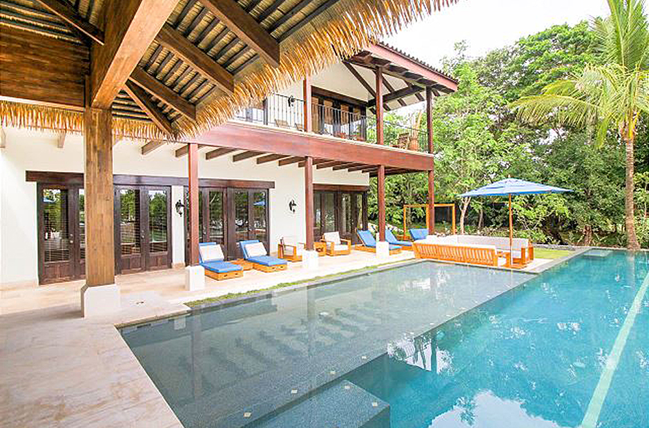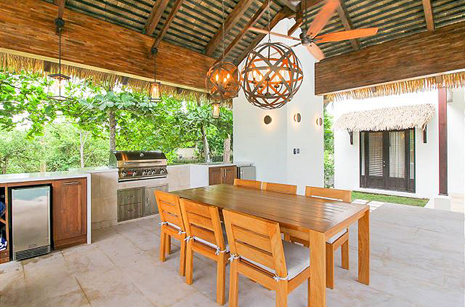 The villa consists of a six-bedroom main house, a one-bedroom two-story private cottage, lush tropical grounds, and a brand new oversized custom infinity pool with a luxury sun terrace, Jacuzzi, and shaded barbeque rancho with a dining area.