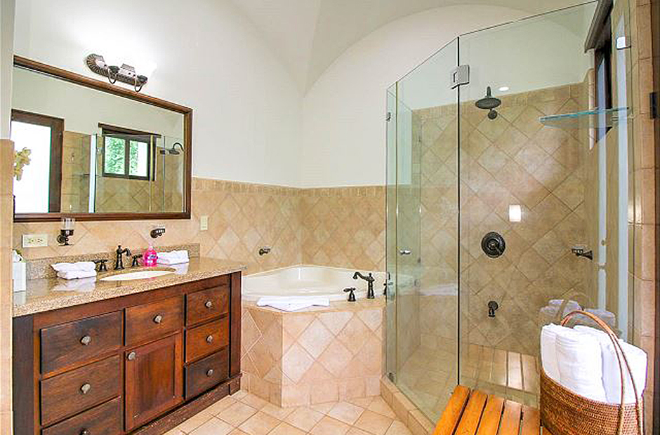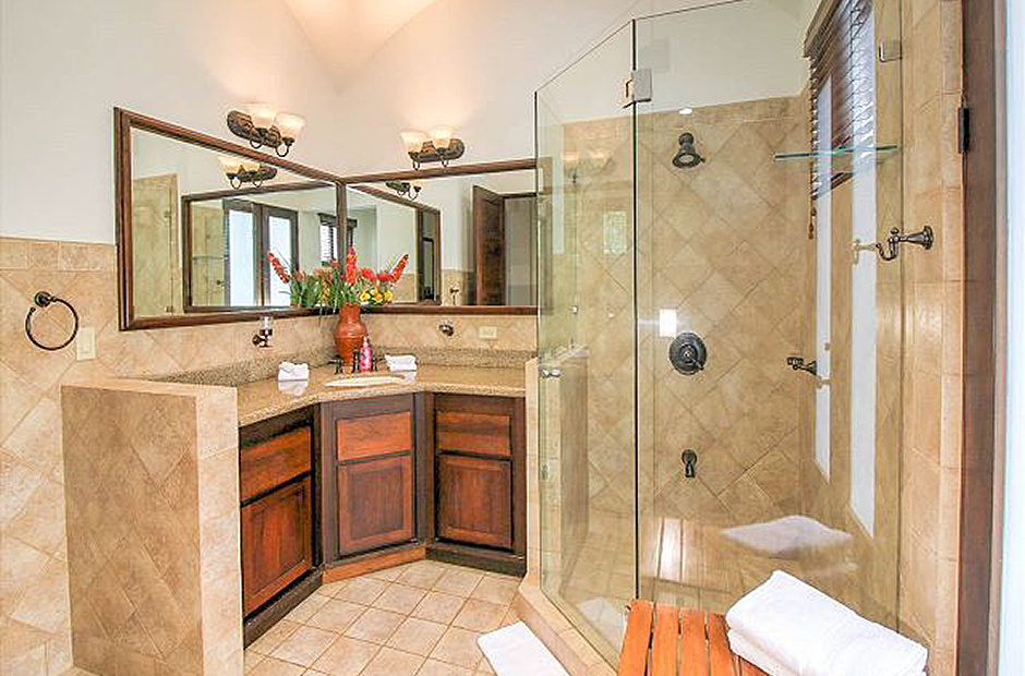 Interior spaces are flooded with natural light from the floor to ceiling sliding glass doors that line the ocean-facing side of the home. The wide terraces span the seaward side of the villa are furnished for lounging and dining, providing plenty of options for the outdoor living that you dream of enjoying on a tropical vacation in Costa Rica. Inside, the villa is fully equipped with all luxury amenities such as air conditioning, wi-fi and, cable television. Our villa is fully air conditioned.