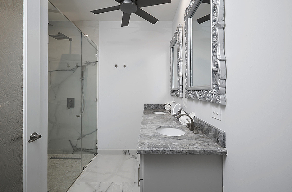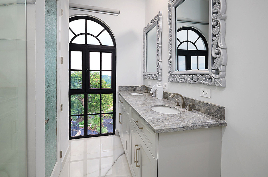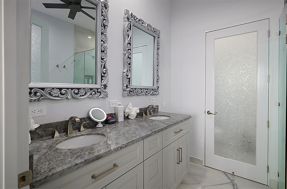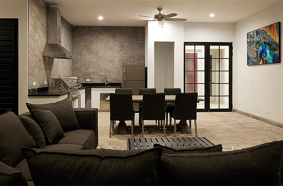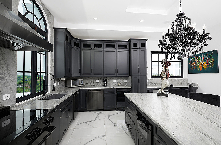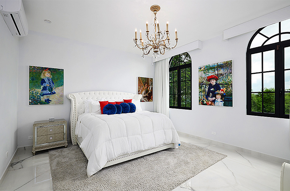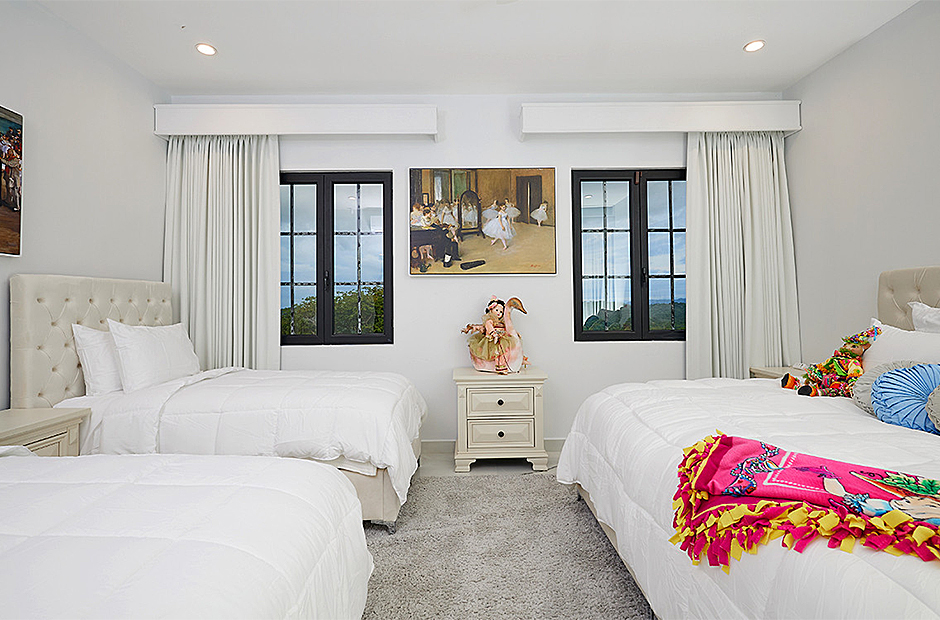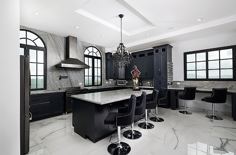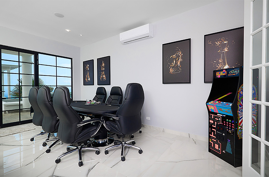 The villa's state-of-the-art kitchen provides an idyllic space for meal preparation, whether you choose to whip up culinary delights on your own or employ the services of a private chef. Equipped with top-tier appliances and a generous center island with a breakfast bar, it caters to the culinary aspirations of the most discerning gourmands. The kitchen overlooks the verdant garden, enhancing the cooking experience with a breathtaking view.