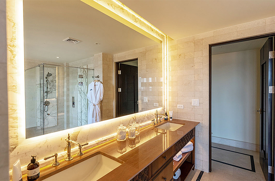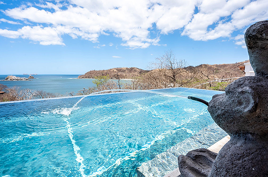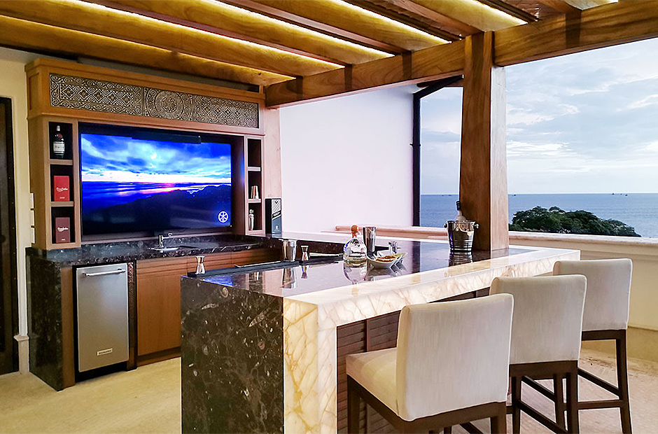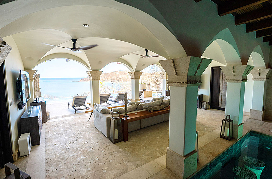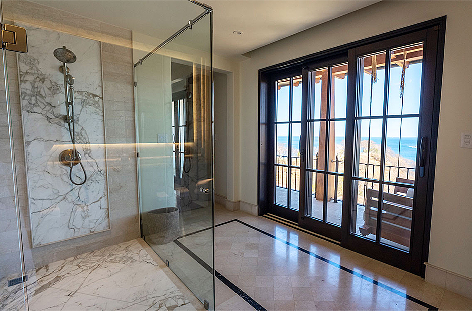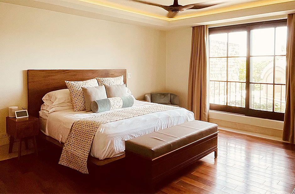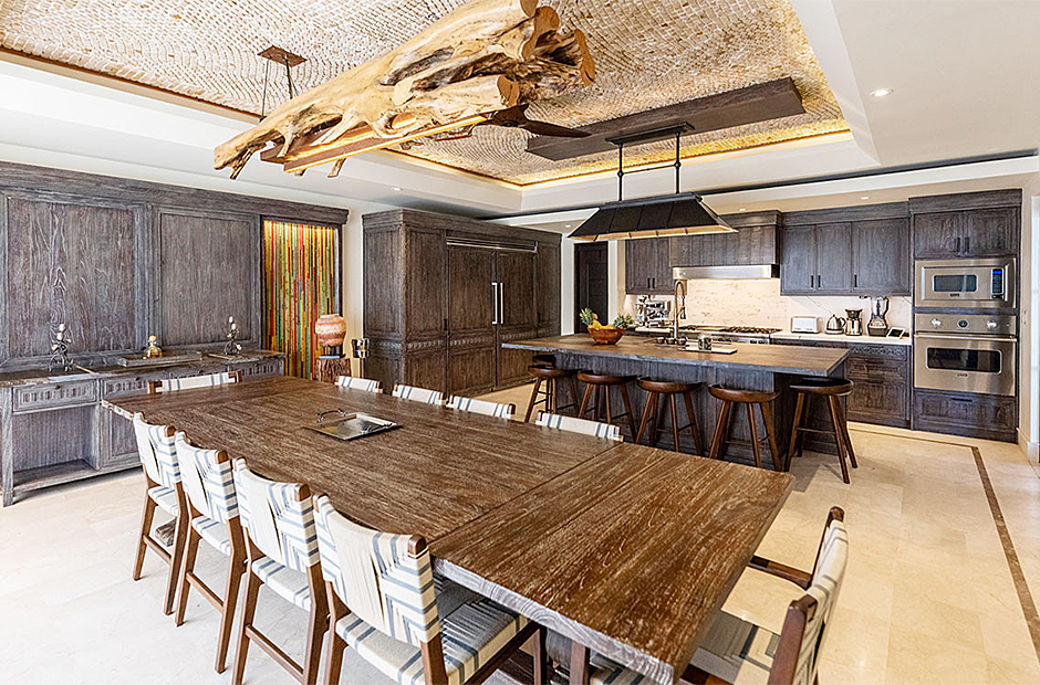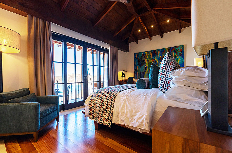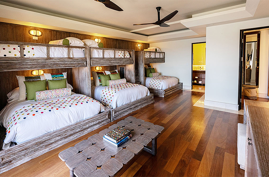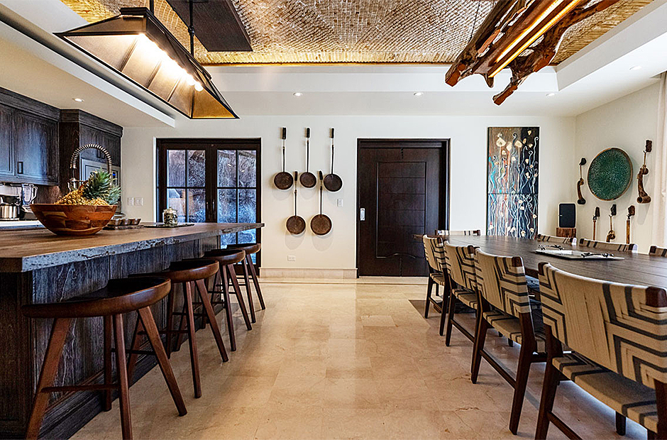 Each of the seven suites constitutes a complete haven. These suites collectively consist of 12 beds, distributed across six king bed suites, while the children's suite showcases a specially crafted bunk bed featuring three Twin and three Queen beds. Each of the seven suites is equipped with bespoke closets decorated with intricate Costa Rican hardwood finishes. The accompanying full bathroom suites feature showers embellished with marble, onyx, and meticulously designed custom tiling. An exclusive feature that sets this villa apart is the careful integration of tablets on nightstands in each suite. This thoughtful addition empowers guests with control over a range of amenities, including lighting, ceiling fans, air conditioning, music, shades, television, and beyond.