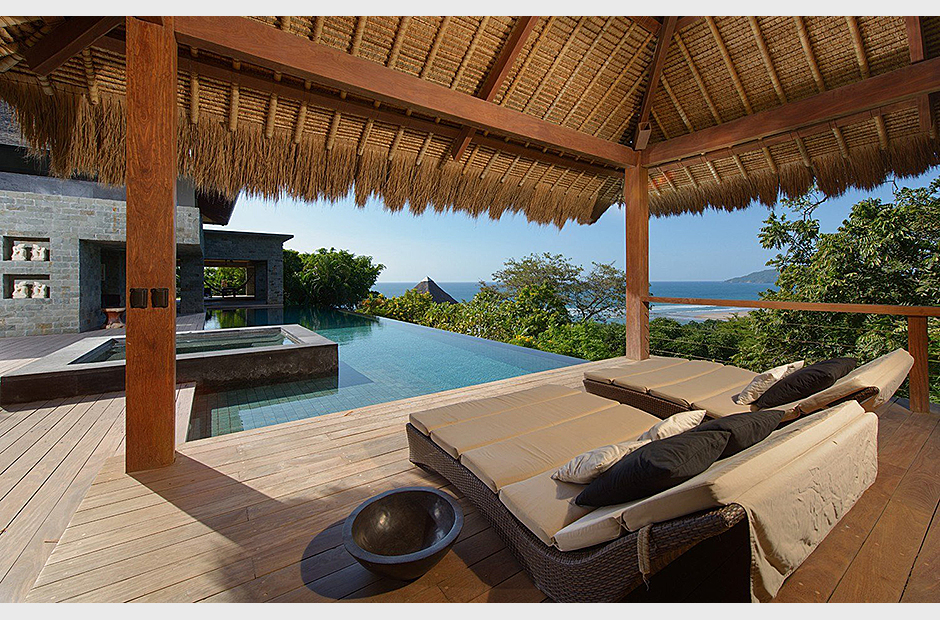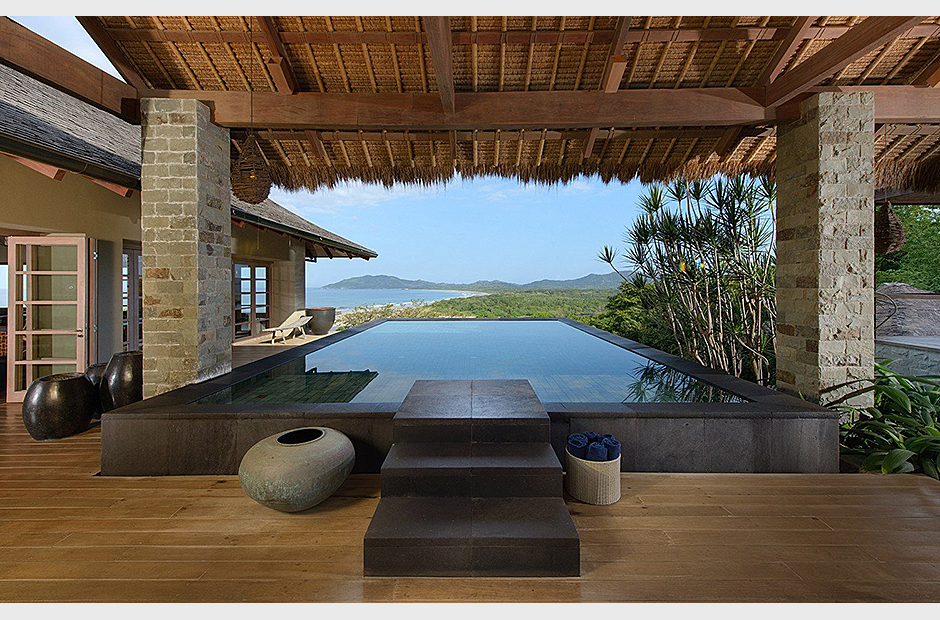 Inspired by Bali style living and built mostly with materials and furniture imported from Indonesia, this villa was designed by renowned San Diego, California architect Steve Adams and constructed by Jeff Hutton of Flor del Pacifico, the top custom homebuilder in Guanacaste. Located on a private, secluded hillside at the entrance of Tamarindo with breathtaking views of Tamarindo estuary and the Pacific Ocean, this villa is only 5 minutes walking distance to the beach and town center.