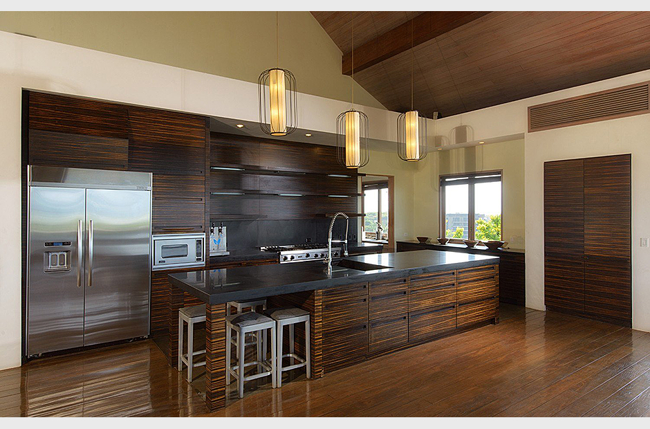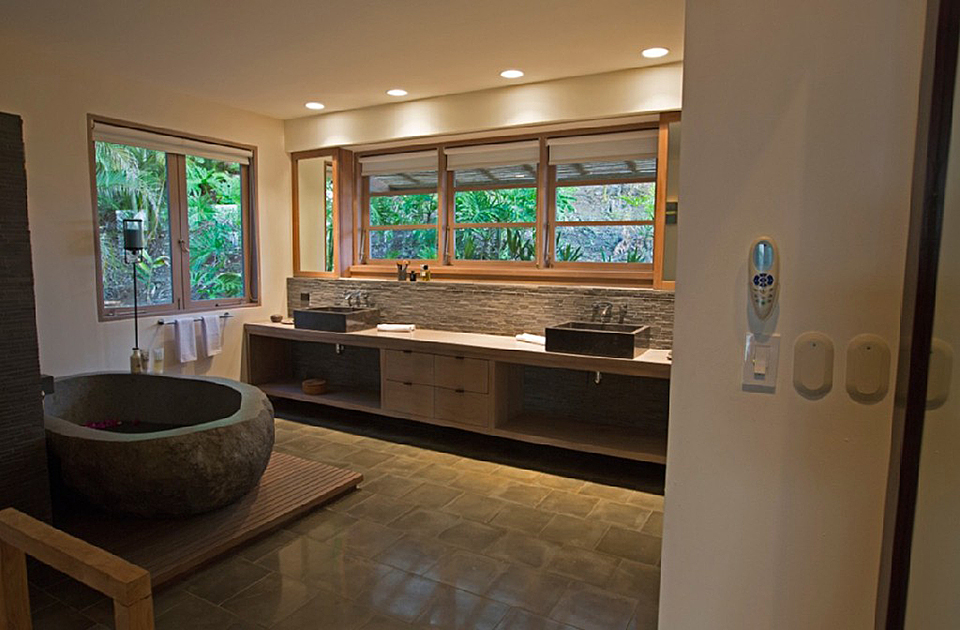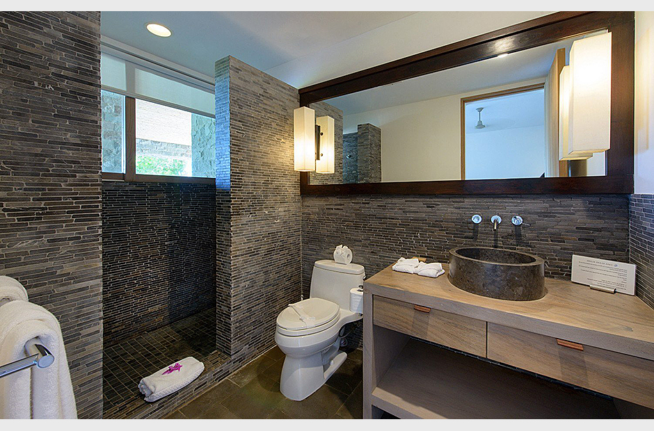 Each of the eight bedrooms comes with a full bath. The 8th bedroom is a guest apartment complete with a king-size bed, separate entryway, private ocean view balcony, a kitchen and dining area, TV, sitting area and walk-in closet.