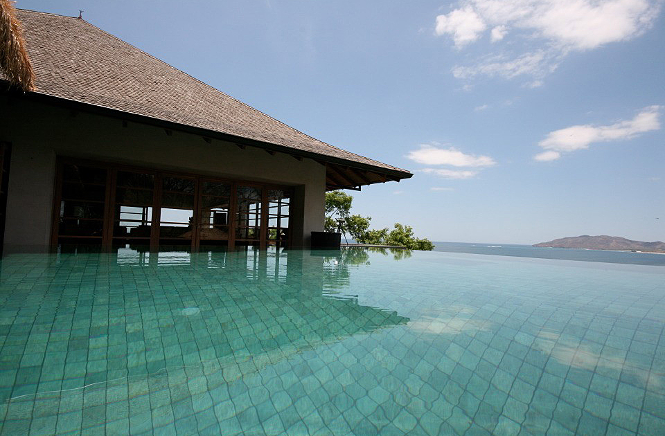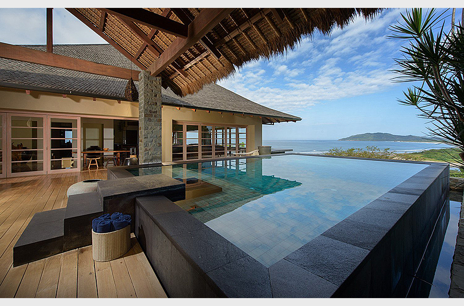 This villa has two pools - one is a 21-meter overflowing lap pool with an integrated Jacuzzi that ends in a bale with double loungers to hang out. The second pool, located on the main floor, overflows on all four sides, giving the impression of a giant mirror looking out over the ocean.