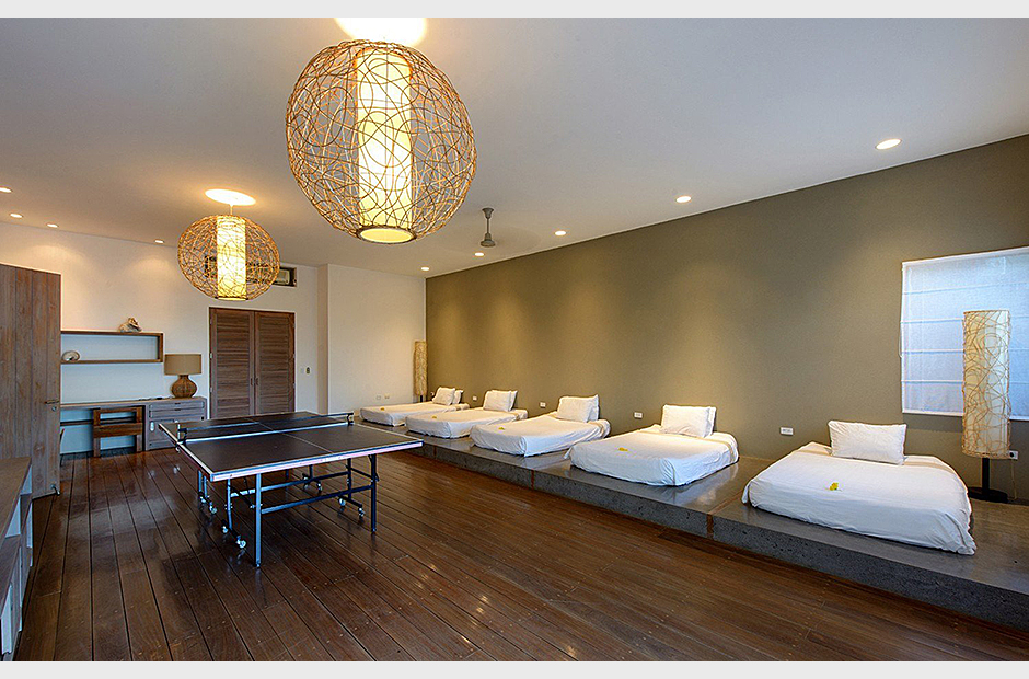 For your entertainment, there are also a variety of complimentary surfboards and stand up paddle boards. Kids will enjoy the 12 foot trampoline, ping-pong table and complimentary skateboards to use on the two quarter skateboard pipes that come together to form a halfpipe. In addition, guests have access to the exercise and yoga room, which is fully mirrored and equipped with weights, exercise balls, yoga mats, an exercise bench and TRX suspension trainers.