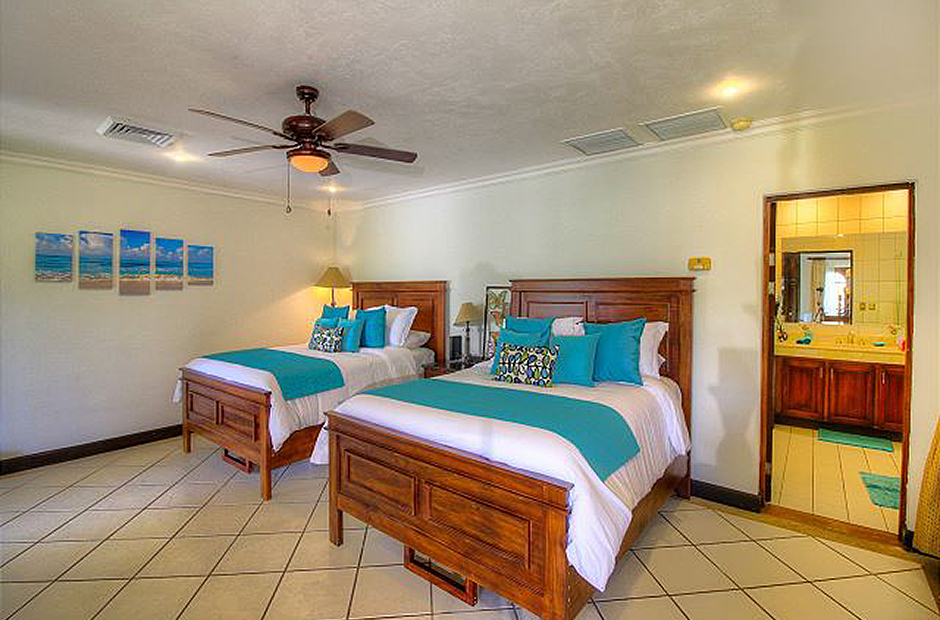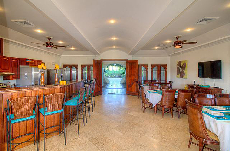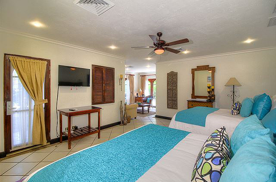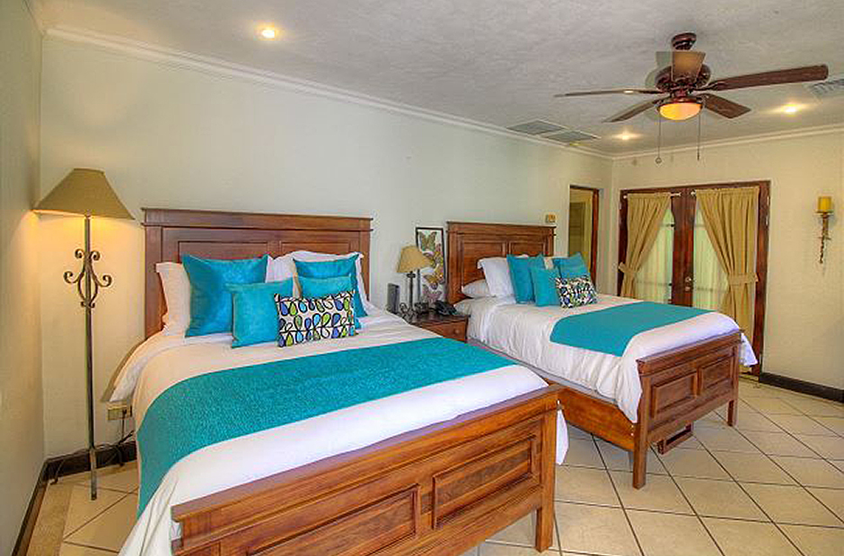We have eight deluxe suites and two very large common areas with large covered patios -- perfect for fostering camaraderie and spending time together. The first floor common area provides cozy dining for up to thirty and a full kitchen with a large covered patio and a big screen TV. The second floor common area is equipped with comfortable couches, a big screen TV, a festive wet bar, a large patio with stares leading to the pool area and a computer and internet station. The 2.5 acres surrounding the villa and very large pool area provide plenty of unique space for large family reunions. Included in your rate is complimentary daily maid service.