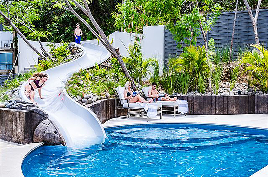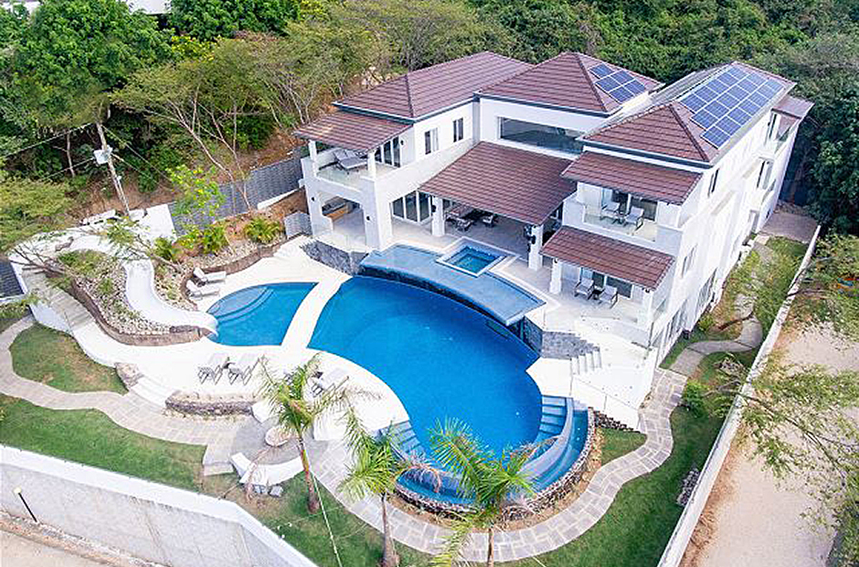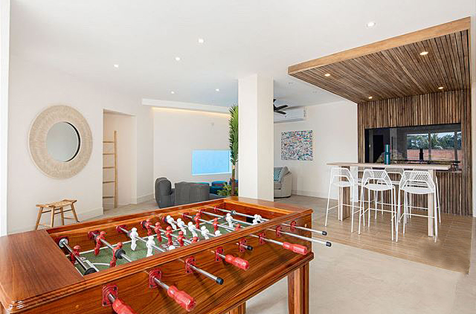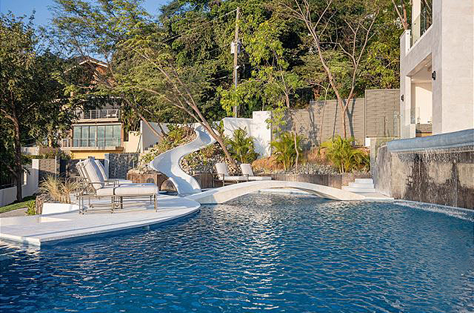 Imagine waking up to views of the beautiful Pacific Ocean and Tamarindo Bay. Diving into the enormous pool, or gliding down the slide while friends and family look on from the underwater pool window in the basement. Unwind by playing a game of foosball, ping pong, or watching movies in the comfortable, air-conditioned entertainment lounge while making drinks in the kitchenette with its own mini fridge and industrial ice maker.