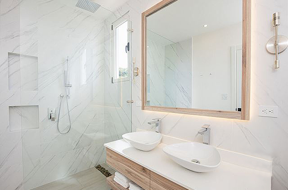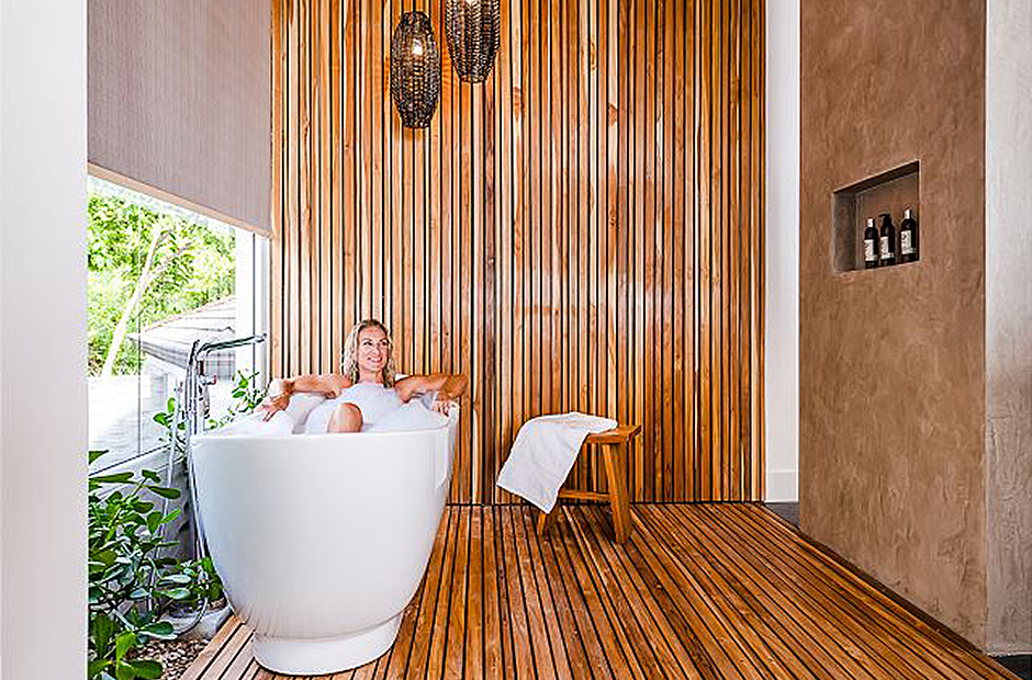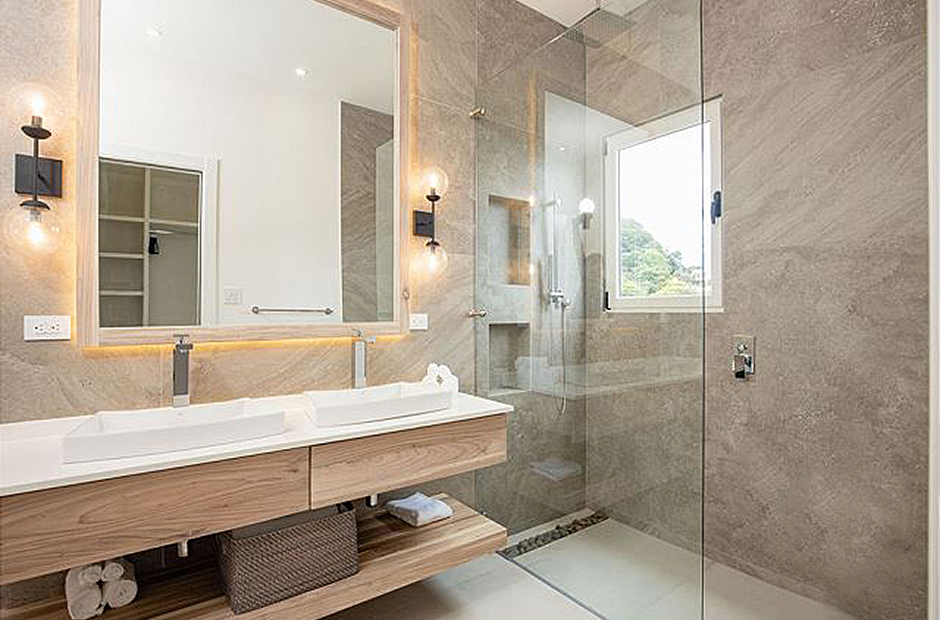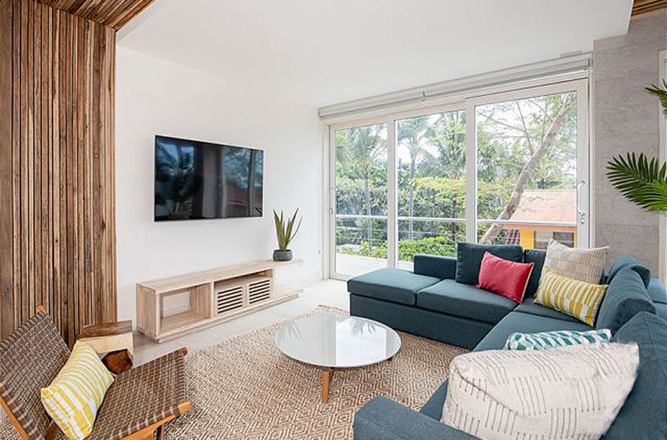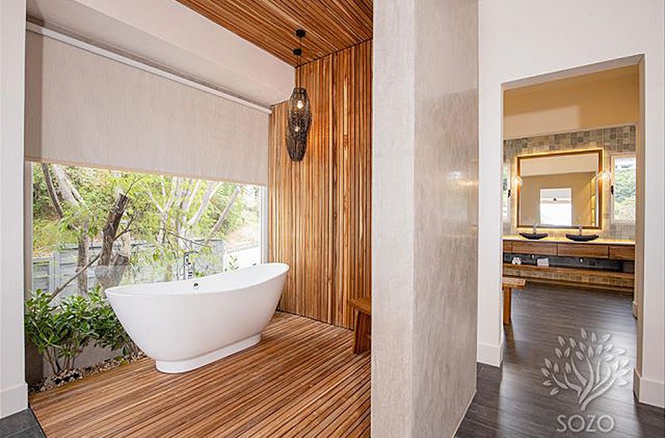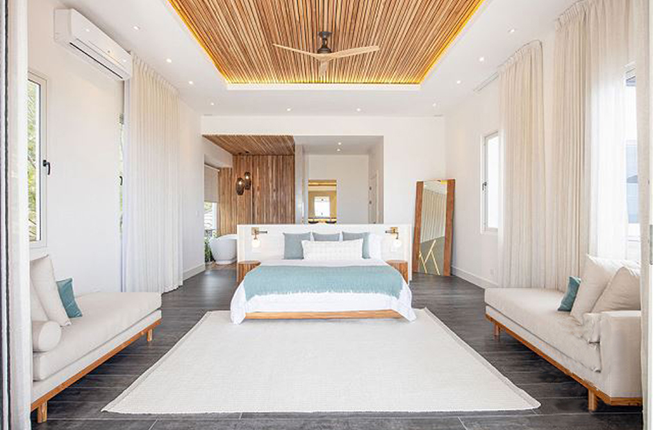 Take a break in the privacy of your stylish ensuite with walk-in closet, a smart TV, and air conditioning, plus views of the clear blue ocean or lush jungle surrounding the villa. The spa-like Master Bedroom features a deep soaker bathtub, a spacious terrace with breathtaking views, an enormous walk-in closet kept cool with its own AC, and a grand bathroom to comfortably get ready for the day or night ahead. A luxurious king-sized bed, and black-out curtains, provide you with a great night's sleep for another full day of fun adventure, or quiet relaxation.