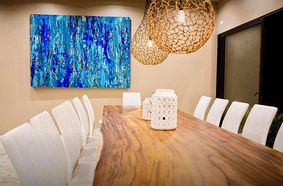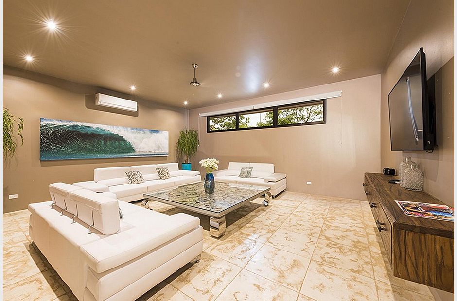 This villa features eight luxurious bedrooms and six full bathrooms, thoughtfully designed for comfort and sophistication. Each room is a sanctuary, with soft linens, tasteful furnishings, and ample natural light that highlights the villa’s contemporary tropical décor. The spacious layout ensures privacy for all guests while fostering a warm and inviting ambiance for shared moments.