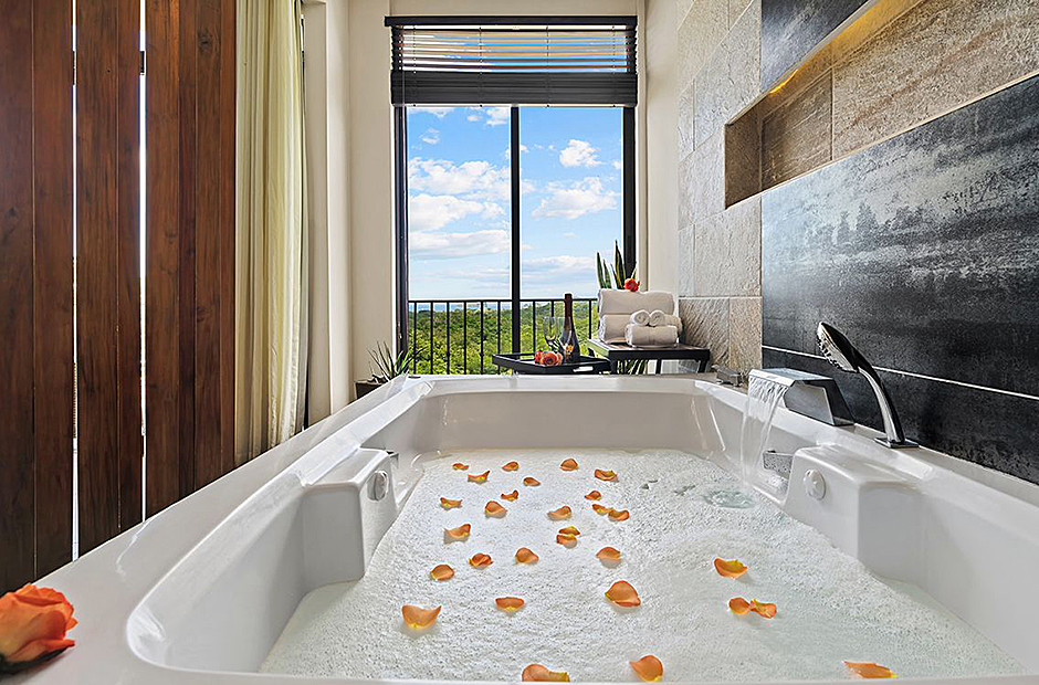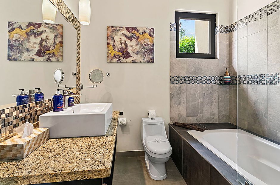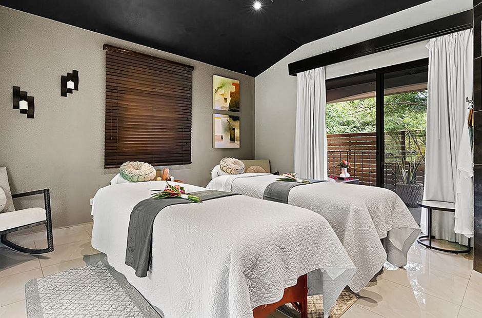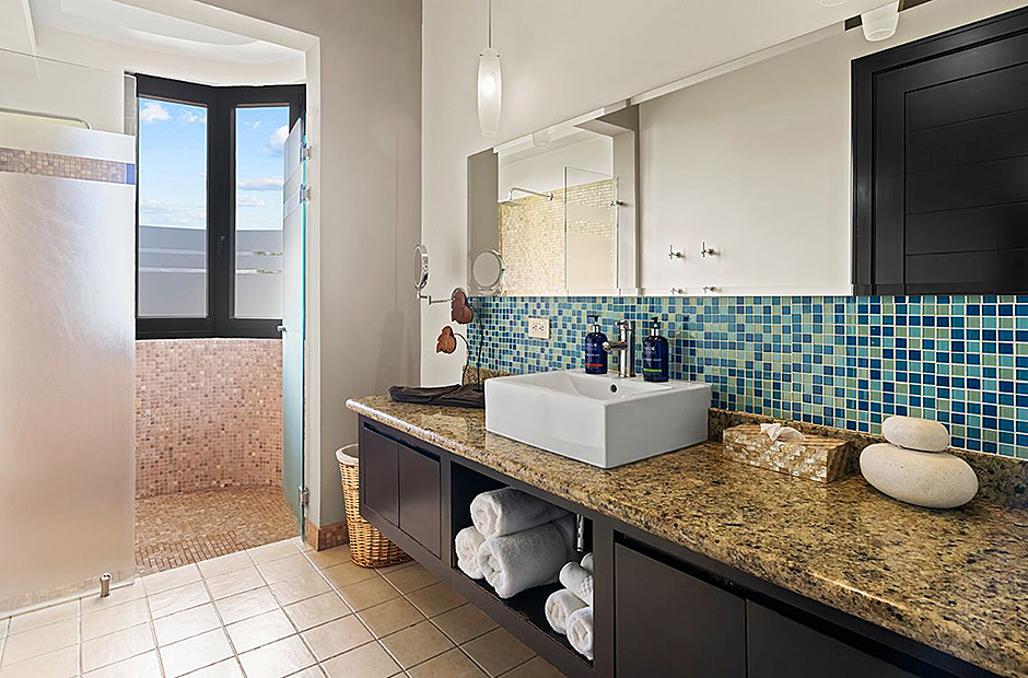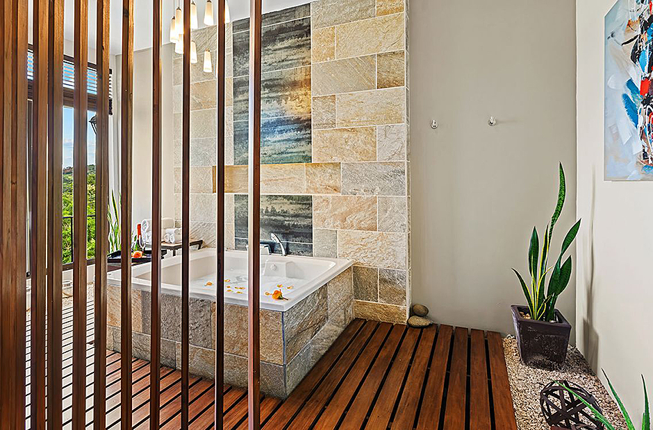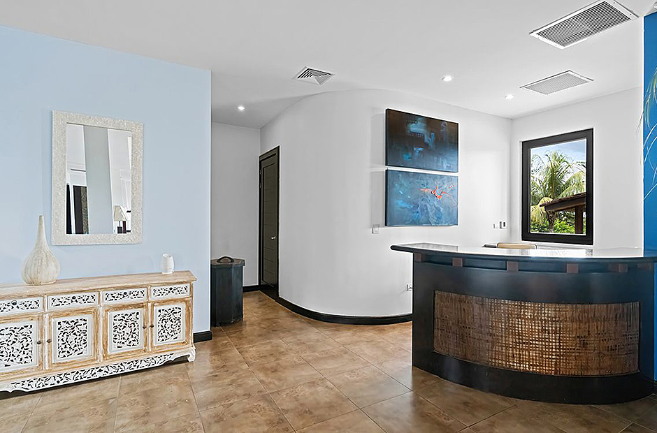The villa boasts a two-tiered infinity pool with wade-in access, a tranquil waterfall, and a swim-up bar accompanied by an open-air lounge, perfect for unwinding in style. Pamper yourself with a selection of rejuvenating treatments at Spa Milagro, including massages, facials, body wraps, manicures, and pedicures.