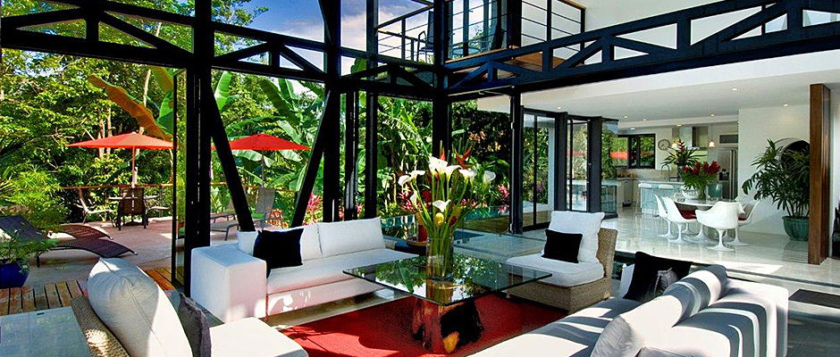 This stunning new five bedroom, seven bathroom, estate home was designed by an award winning architect and sets a new standard of excellence in beautiful Manuel Antonio, Costa Rica. Located in an extremely private area – yet close to all amenities, and with approximately 6000 square feet of overall living space, this sophisticated and spacious retreat is definitely “one of a kind”. The property includes a main house and a separate private master casita on over four acres of beautiful jungle (with lots of monkeys) and lushly planted gardens surrounding the compound. The completely gated grounds with an electronic gated entrance and parking for five vehicles, are spectacularly illuminated at night providing a magnificent nighttime ambiance.
