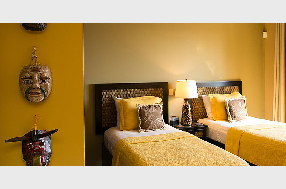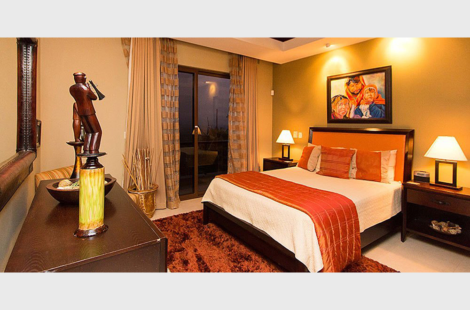The villa has three floors with eight elegant bedroom suites. No expense has been spared on the construction and furnishings of this villa. The entire house is outfitted with a/c and ceiling fans to keep you cool on the warmest days. Hand-picked local and international artwork adorns the walls and some of the finest of materials decorate the rest.
