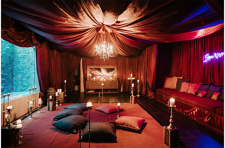 With amenities like an Iconic Buddah pool, a 16-person Jacuzzi, and a rooftop infinity pool, you might never want to leave. Unwind in sunken lounges with fire pits or on the rooftop loungers. A massive dining table welcomes all, but if cooking isn't on your agenda, a private chef is ready to cater to your needs. The villa boasts an indoor nightclub, a theater room for entertainment and a butler on-site.