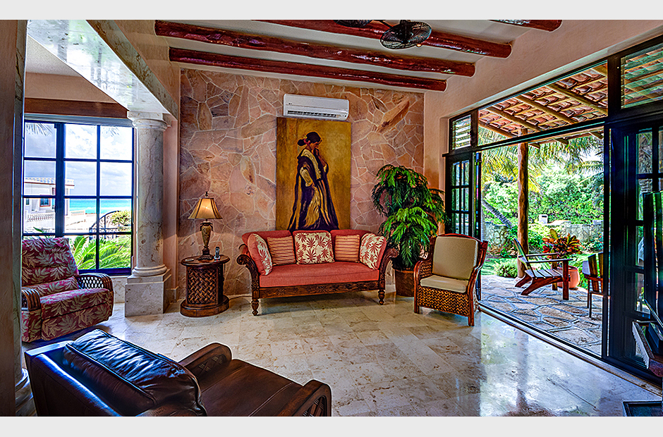 Built six years ago, this villa stands out in the Riviera Maya due to its unique architecture. Enjoy breakfast in the shade of the courtyard, surrounded by plants and flowers, or waking up to the Caribbean sea views from your bedroom. Show your competitive side with a game of shuffleboard or just sit back and relax in the 1st floor plunge pool, overlooking white sandy beaches and shallow turquoise water.