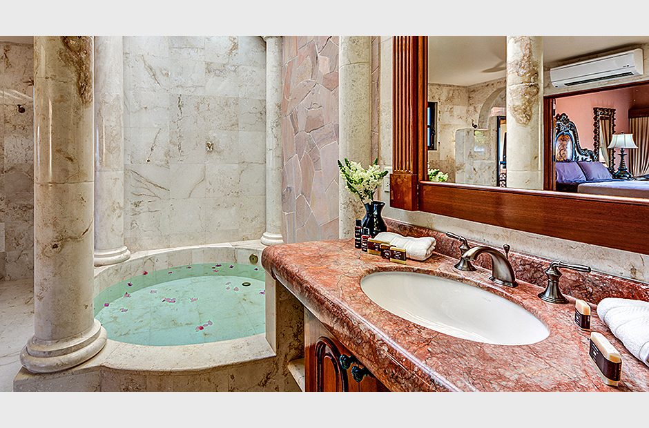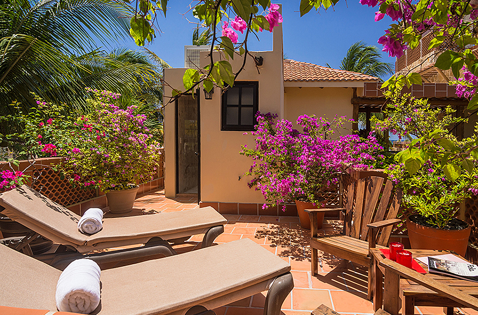 The villa offers three en-suite bedrooms in total, with three sharing the stunning views across the sea. Downstairs you will find a fully equipped kitchen, best applied by private chef service, to create delicious meals throughout the day. The bustling courtyard provides the center piece of the house while the watchtower makes for an experience like no other within Playa del Carmen. Make sure to head up there as the sun sets and the sky turns a magical pink.