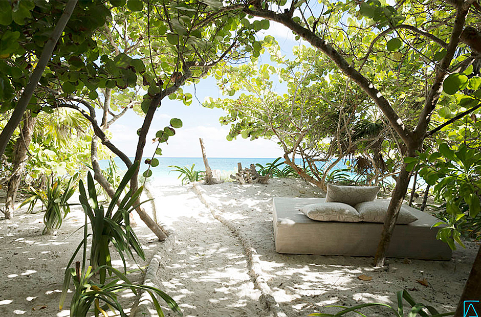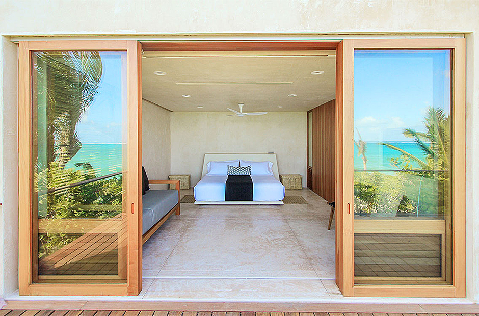 The villa boasts an array of thoughtfully designed spaces for both play and contemplation. Along the seafront, bask in the sun on beach beds with a piña colada crafted from estate-grown coconuts, snorkel around the reef, or paddle out on a kayak. Retreat to the coco palm lounge, shaded by swaying trees, where stylish loungers and handmade hammocks from nearby Merida beckon. Lunch can be savored under the coco palms, accompanied by the mesmerizing sight of ospreys diving for their prey.