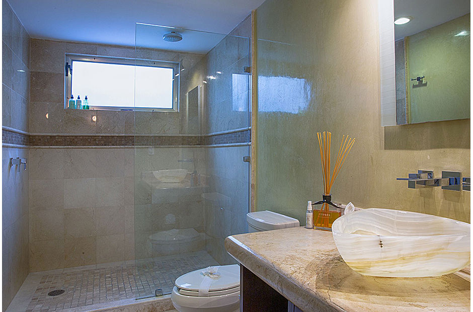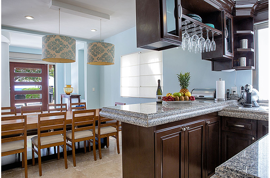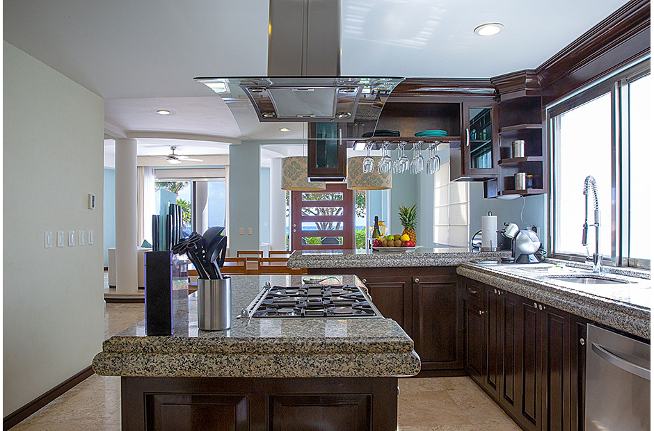 The home features a pool with direct access to the beach. The junior suite with ocean view and access to the beach and pool has a king-size bed, walk-in closet, air-conditioning, fan, and flat-screen TV. Other features include air-conditioned living room, round-shaped furniture, 42-inch plasma screen and surround stereo system. In the dining room you will find designer lighting, a fully-equipped kitchen with granite counters, island with wine cooler, large cabinets to store your every treat, Viking fridge, laundry room and more. A third bedroom features twin beds, fan, air-conditioning, flat-screen TV, closet and full bathroom.
