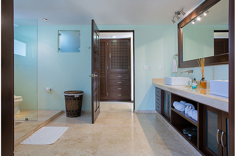 On the upper floor you can enjoy the marvelous master bedroom with a lovely his/her bathroom, walk-in closet made out of mahogany, lounge, Jacuzzi bathtub, air-conditioning, fan, flat-screen TV, satellite dish, a terrace covered with a large palapa and an infinity pool.