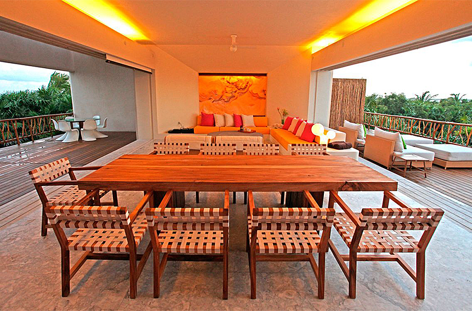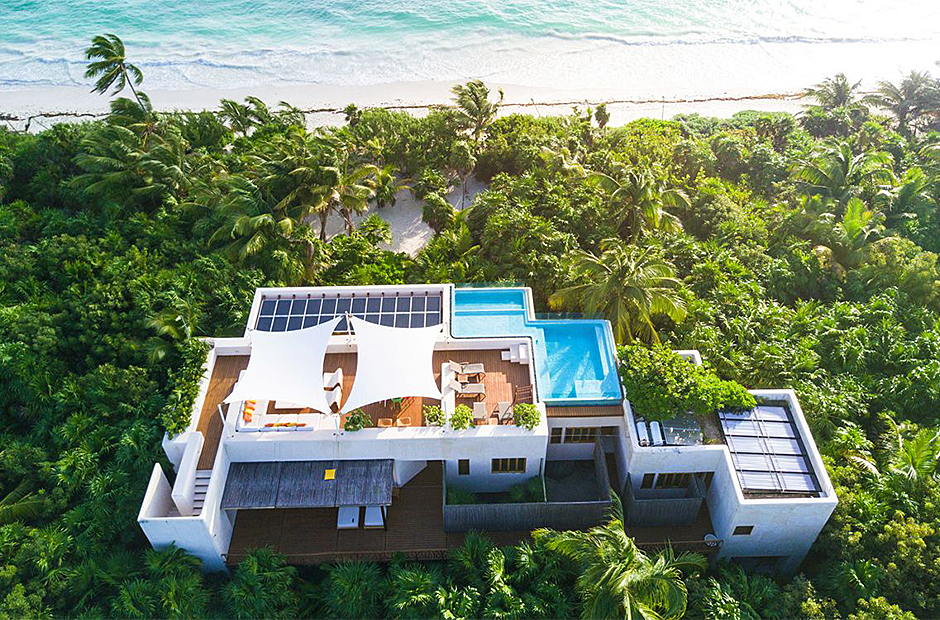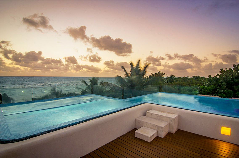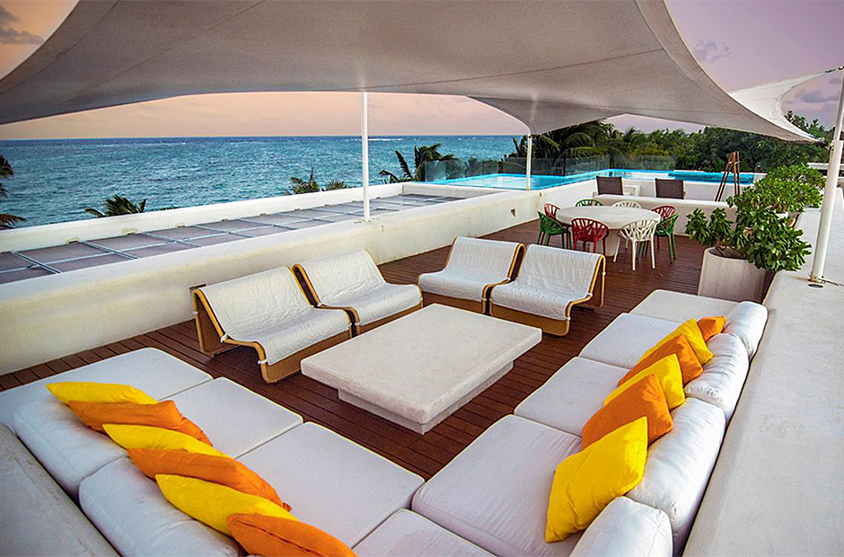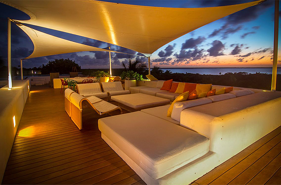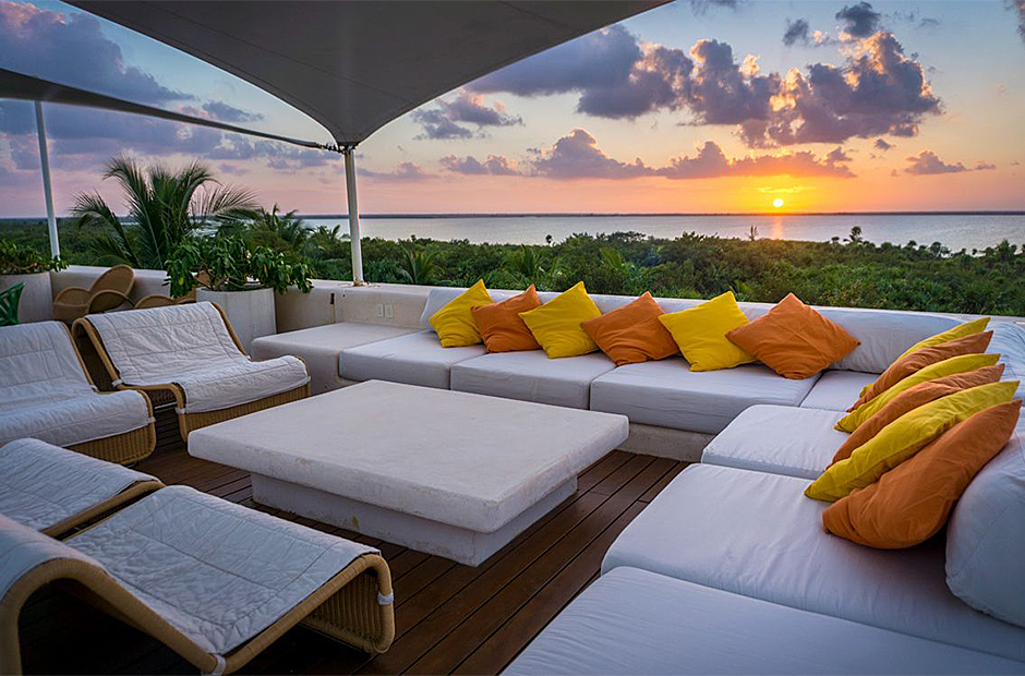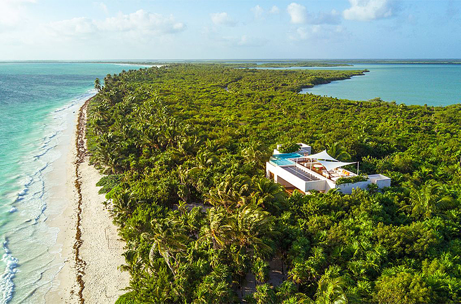 The recently constructed villa was designed by De Ytrube architects and is contemporary in style. It is nestled on five acres of lush vegetation and provides a stunning 300 feet of beach and an additional 300 feet of lagoon frontage. The lagoon leads directly to ancient Mayan canals.