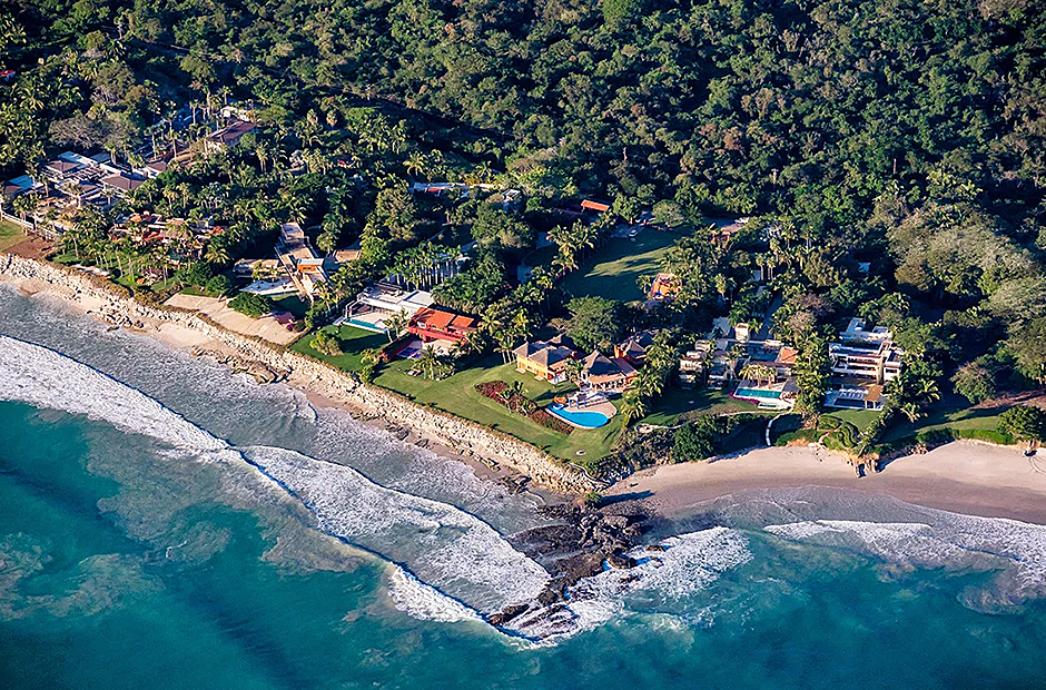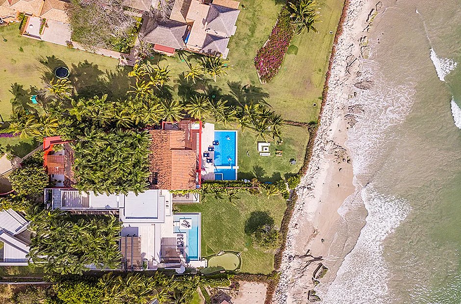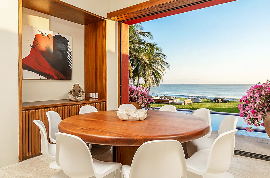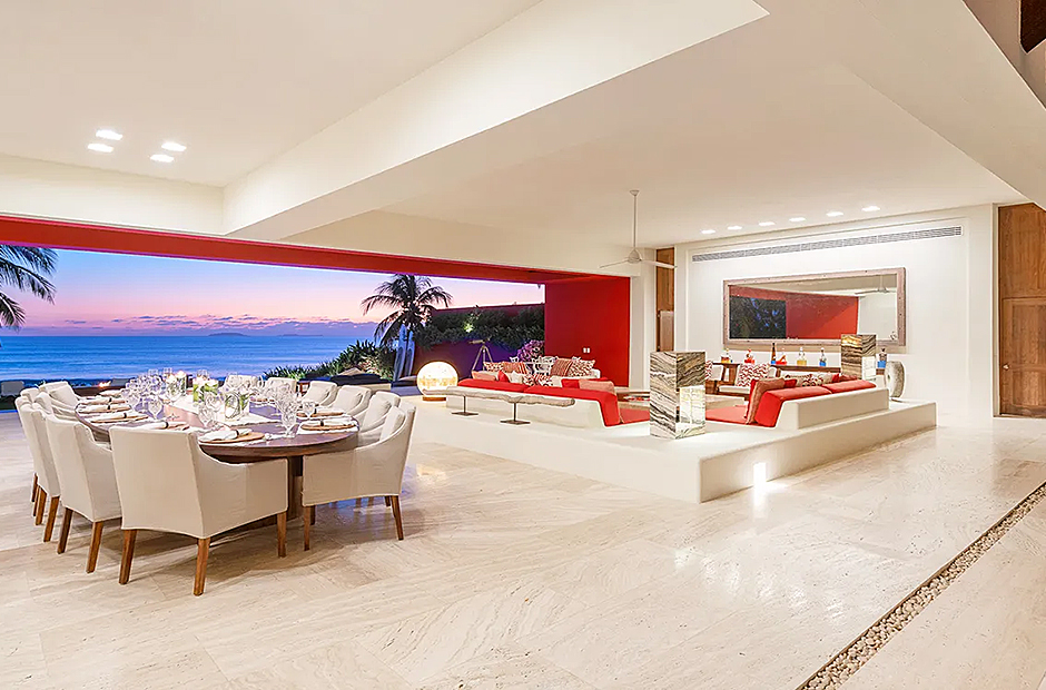Located in Ranchos Estates, this extraordinary oceanfront home with direct beach access is a pristine and private escape. The five bedroom Mexican contemporary residence was designed by master architect Pepe de Ytube, with a prime location on a stunning 11,000 square foot site with stunning coastal views.