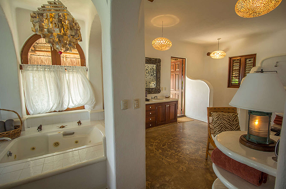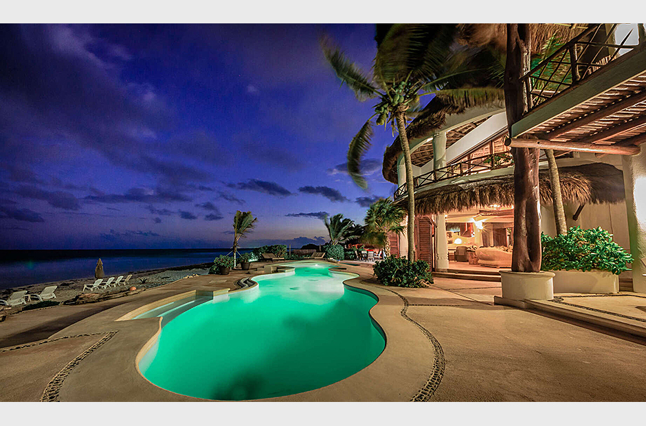 The beautiful, contoured swimming pool with an arched bridge lies right against the white sands of the beach, where you will find sun loungers and parasols just steps from the turquoise ocean and breaking waves. Sea kayaks are available. To unwind, you can take a well-deserved soak in the outdoor Jacuzzi as the sun starts to set or relax in the pool bath. Indoors, you will find a home entertainment system with a dish network TV, a DVD player, a stereo system, and wireless internet access. The Casita boast an office and a workout room. Your reservation includes housekeeping.