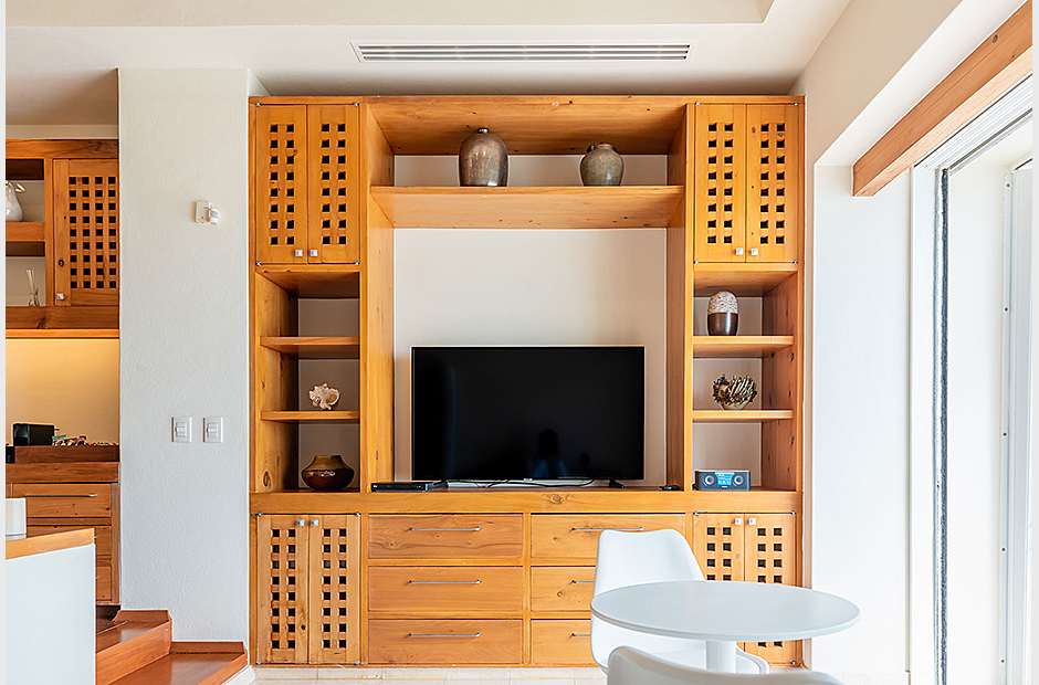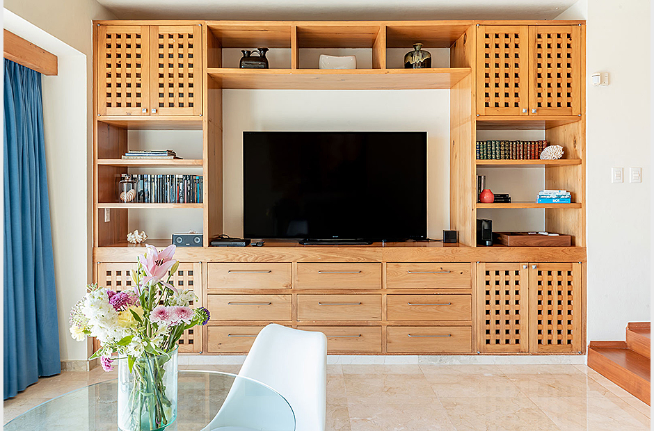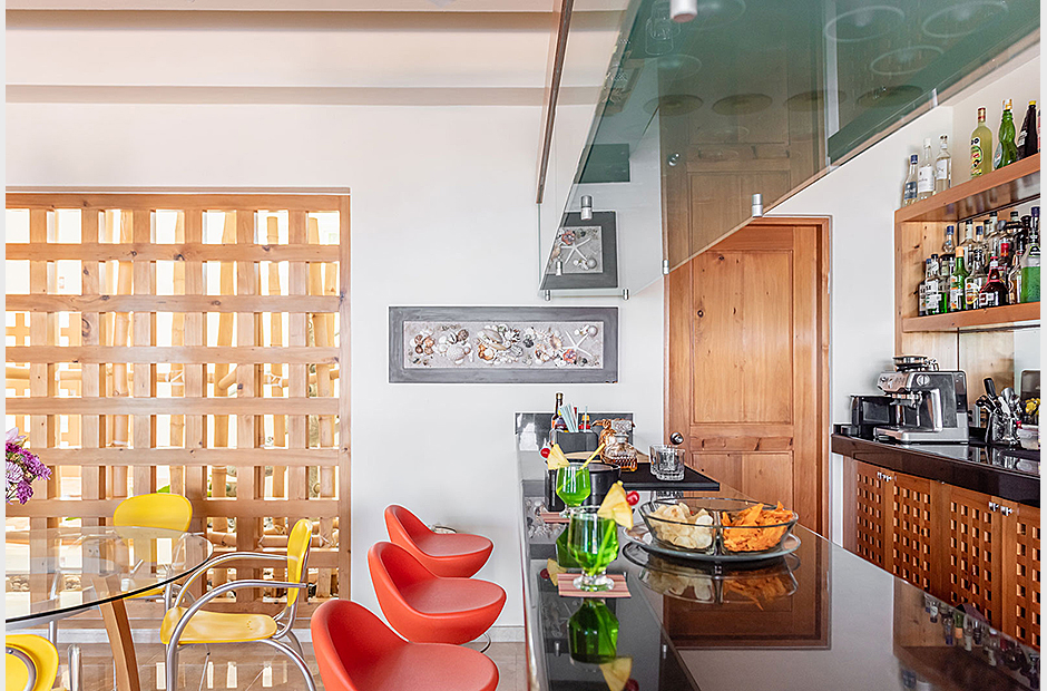 Climb to the rooftop and find the semi-covered terrace, which could easily become your favorite spot. With a dining table, barbecue, and sun lounge, this place is perfect both for reunions and relaxing yoga sessions with 360º views. If that wasn’t enough, there is a pneumatic vacuum elevator worthy of a super hero’s lair that connects the three levels and makes the villa perfect for senior guests.