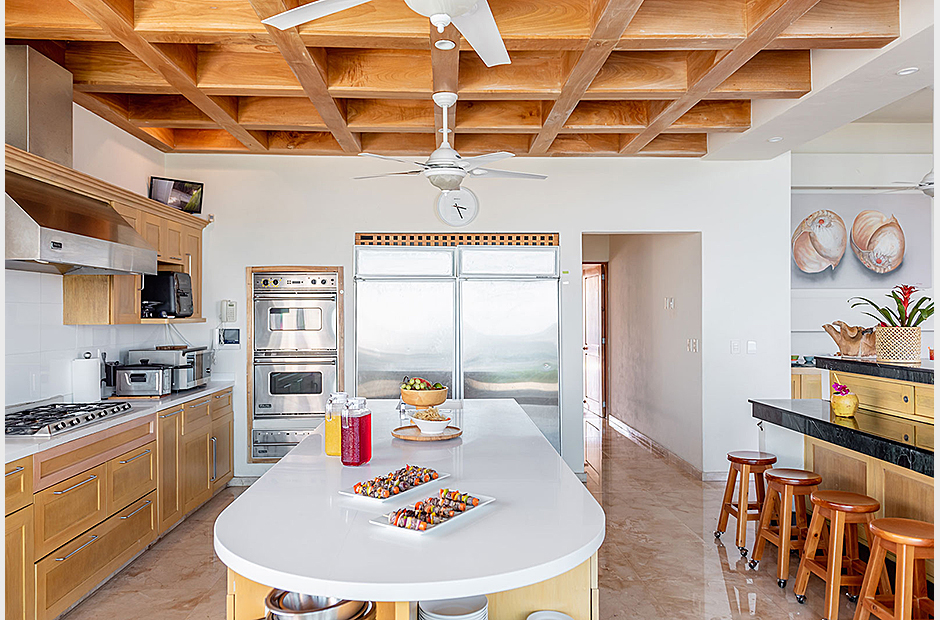 On the second floor, you’ll find five fully-equipped bedrooms that will comfortably accommodate up to 15 guests. Bathtubs with ocean views, king and queen size beds, and private terraces make it hard to say which is the best suite, but there sure is something special for everyone.