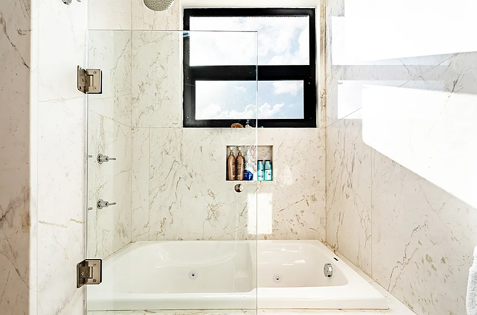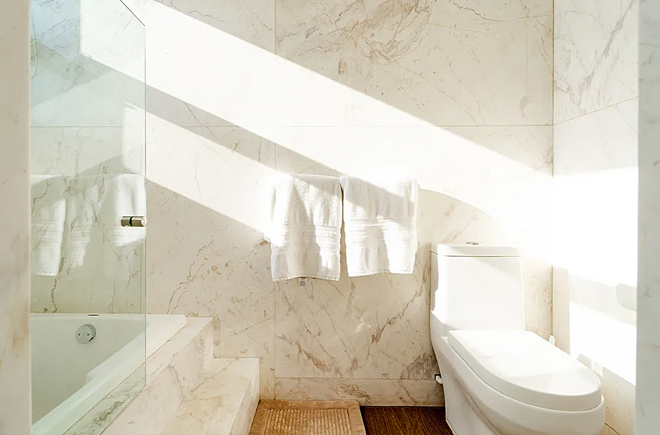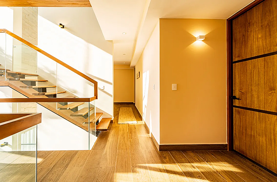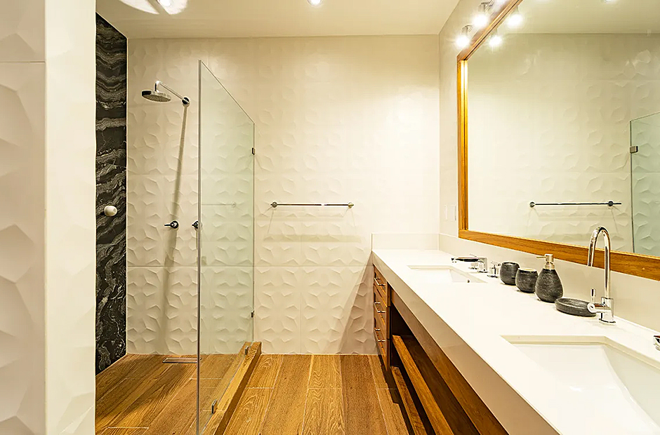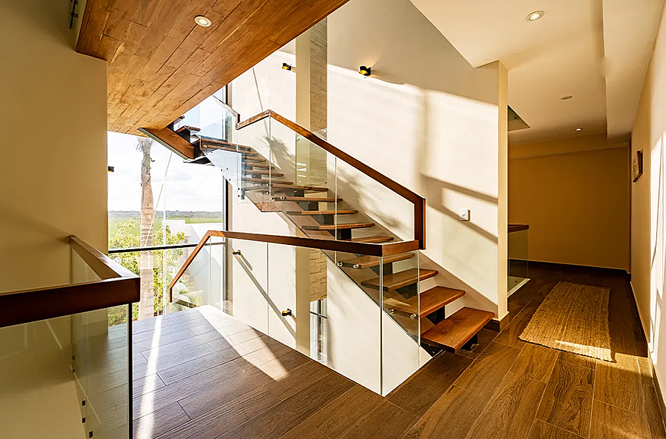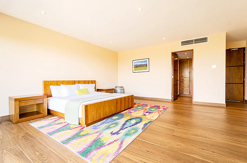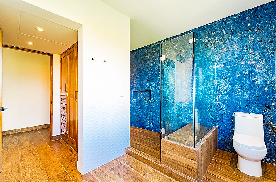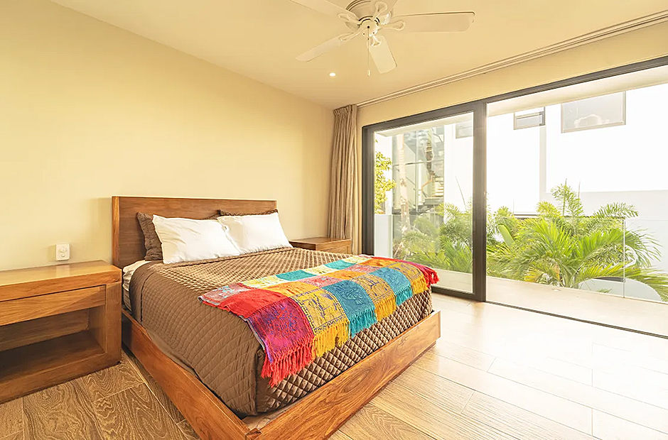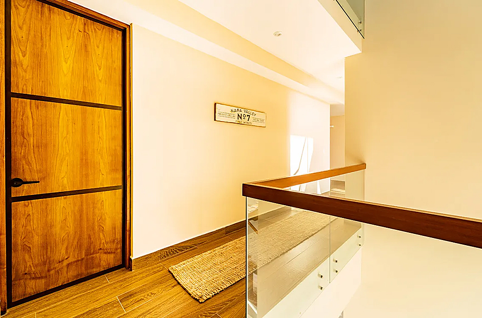 The interiors are thoughtfully designed with natural Tzalam wood finishes and furniture, harmoniously paired with locally sourced natural stone and Italian ceramic tiles. This harmonious blend gives the space a sophisticated feel, while fully embracing the surrounding natural beauty. Notable art pieces from some of Mexico's renowned painters further enrich the aesthetic appeal of the lower floor.