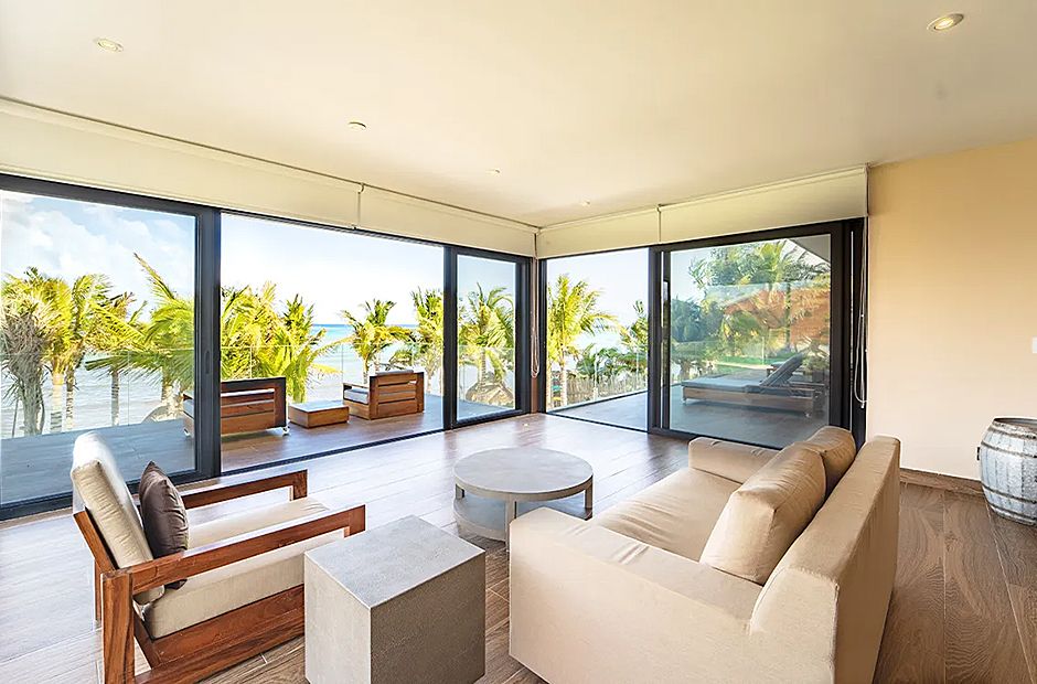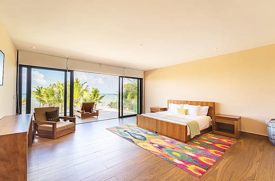 Nestled on a sandy beach within a private bay, this newly-built haven showcases a modern Mexican design that flawlessly marries luxury and comfort. Each room is adorned with floor-to-ceiling windows, offering captivating views of the sparkling Caribbean Sea to the front and the protected mangroves to the rear.