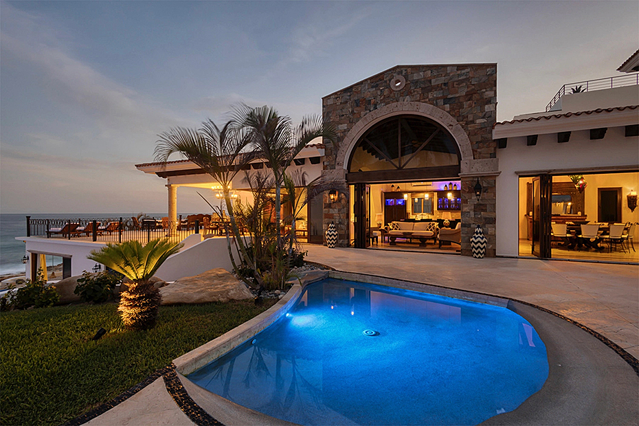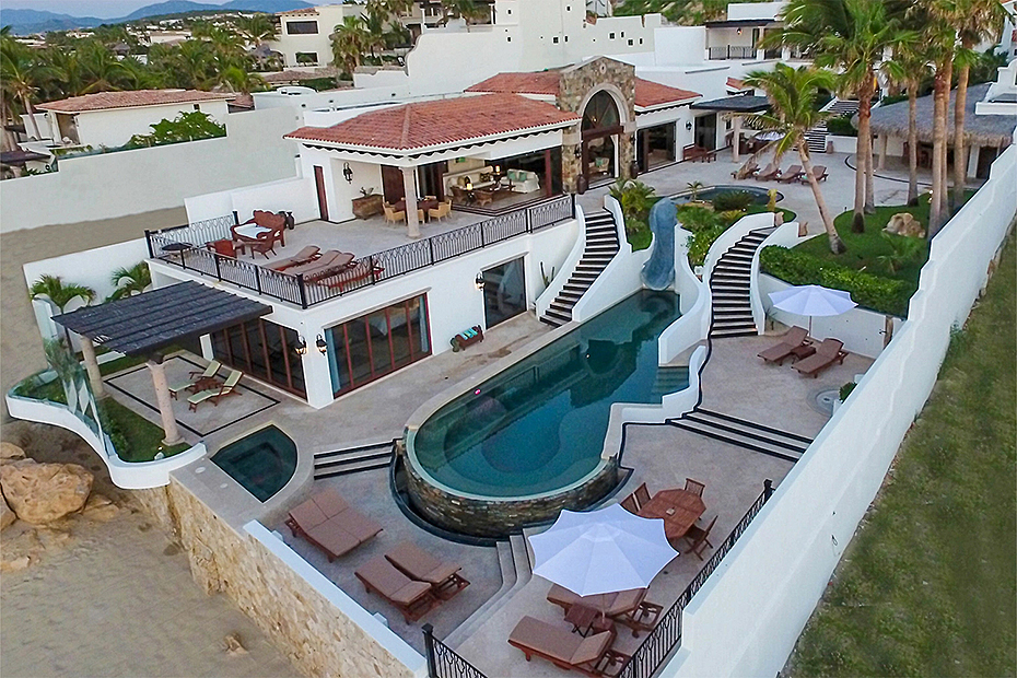 Comprising 7 bedrooms and 7.5 bathrooms, this villa extravagantly accommodates up to eighteen guests. With all-inclusive amenities, excluding food and drink, spa fees, and gratuities, this Los Cabos villa rental sets the stage for corporate retreats, family celebrations, or unforgettable vacations with friends in Mexico.