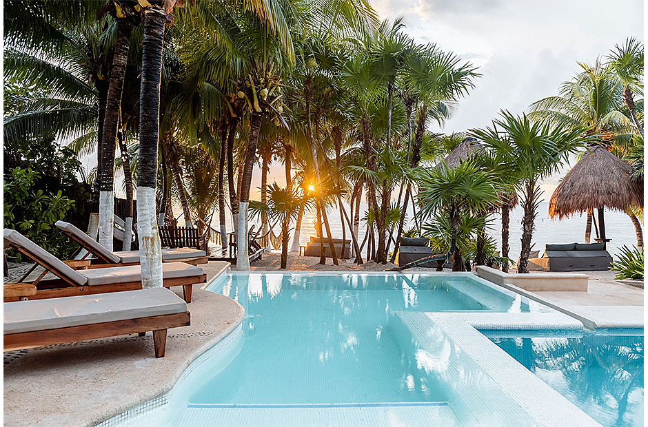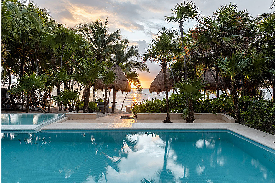 This villa in Tulum is nestled between the lush tropical jungle and the gorgeous Soliman Bay. Its blend of natural materials, lavish finishes, and breathtaking ocean views make it the perfect tropical getaway.