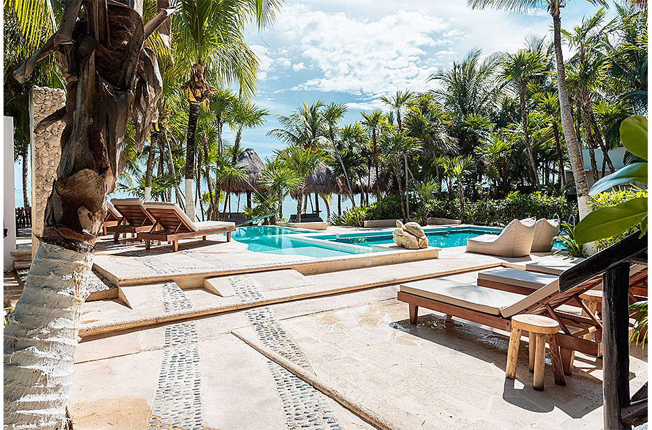 This beach house near Tulum is located in one of the most privileged places in the Riviera Maya. Just a 15-minute drive away from the charming town center and secluded in a private inlet but still close enough to Maya ruins, cenotes and other natural wonders, this villa is a fantastic retreat to spend a memorable holiday in paradise.