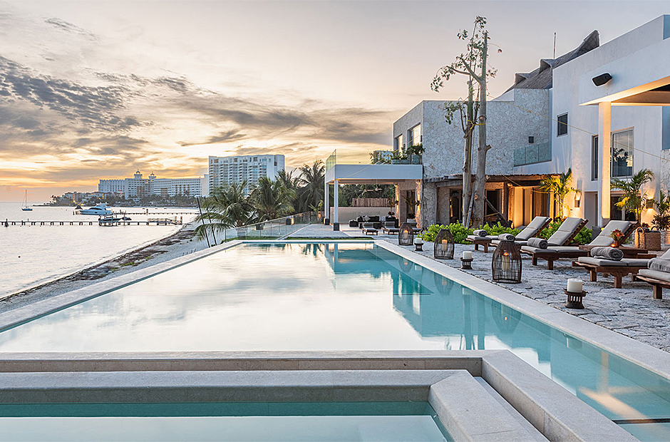 Sitting on Cancun’s most coveted beach, this villa offers up to 25 guests across eight-bedrooms exclusive front door access to the renowned Flamingos neighborhood; a calm, crystal clear haven. From here, the choice is yours. Connect to all the wonders of Caribbean city life; a stone’s throw to the night clubs and backdoor access to the Pok-Ta-Pok golf course.