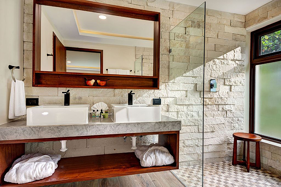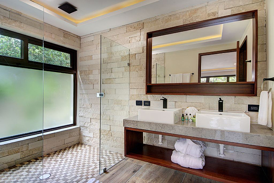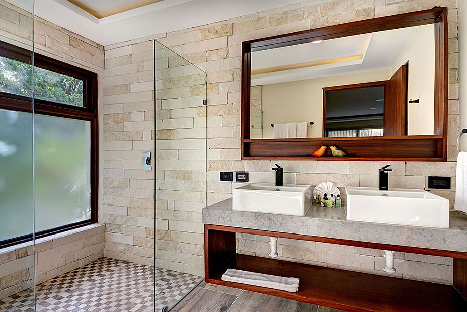The moment you enter into the villa, you will experience a captivating view of the water and talc-white sand from many of the rooms. This villa features 8 suites each with it's own large private bathroom. Some of these bathrooms are comprised of both showers and bathtubs. There are 6 large king suites each with one king size bed. The remainder of the bedrooms consist of 4 double queen suites, each with 2 queen size beds.