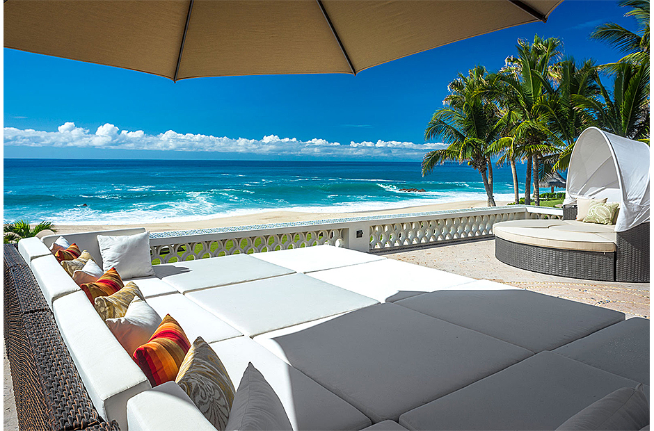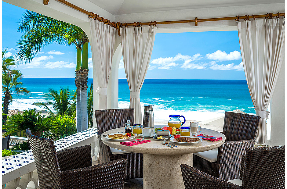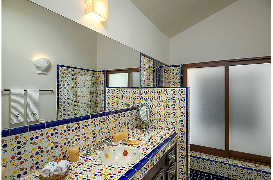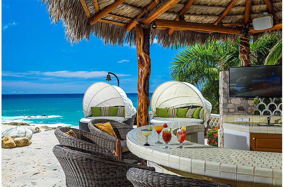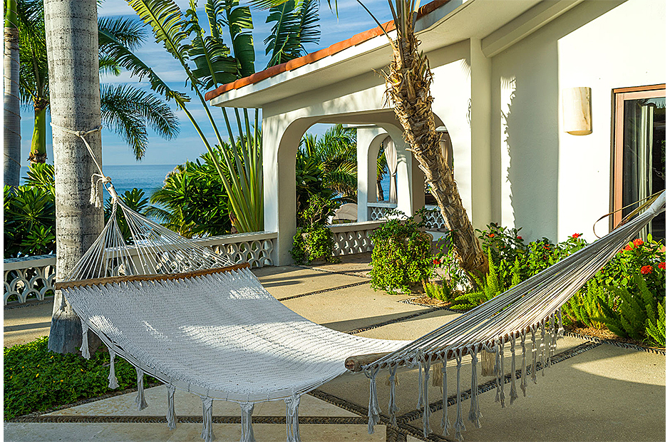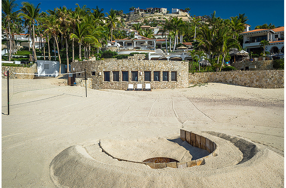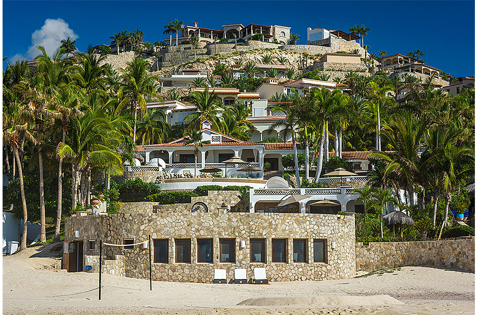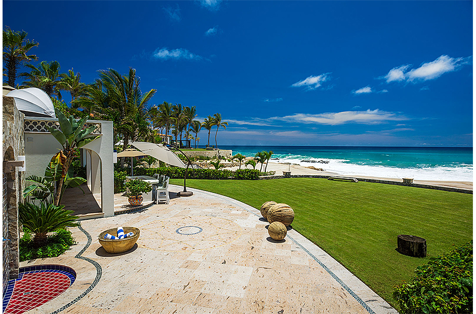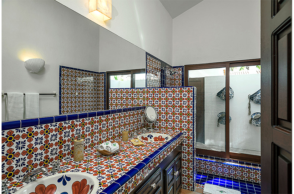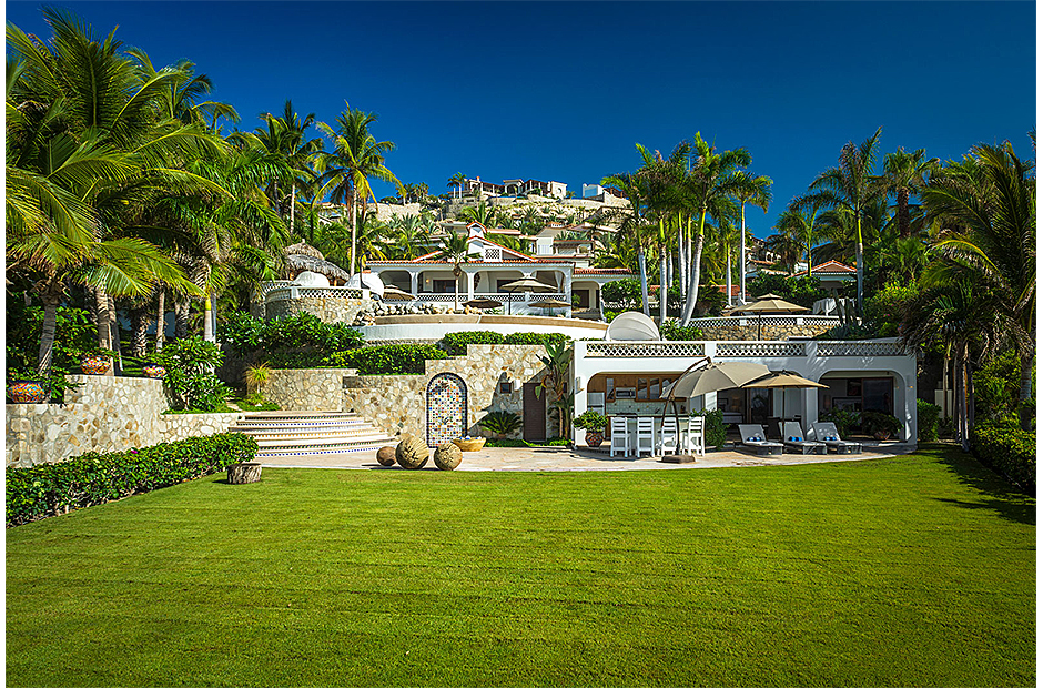 Designed in the traditional style of Palmilla, the villa features red-tiled roofs, whitewashed walls, colorful homemade tiles, and charming fountains that evoke the gracious ambiance of old Mexico. The eight-bedroom estate cascades down a hillside to its own private beach, making it an ideal setting for entertaining. Whether you’re hosting a sunset soiree, a formal dinner party, or a casual gathering with family and friends, the expansive outdoor spaces provide the perfect backdrop. A verdant oasis with an infinity pool, spa, outdoor palapa bar, gas fire pits, large patios, and a huge lawn, the villa also boasts the largest private gym in Cabo.