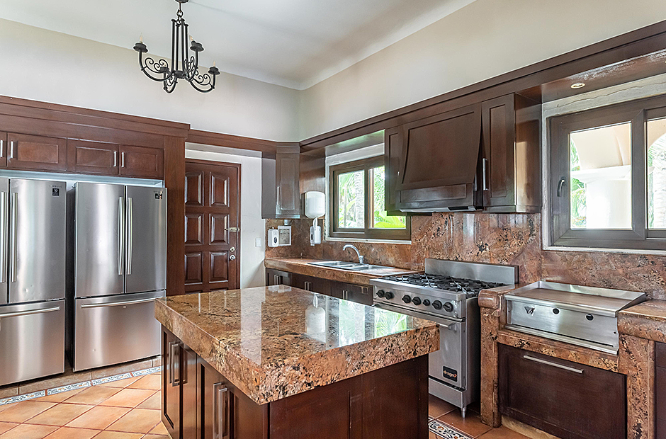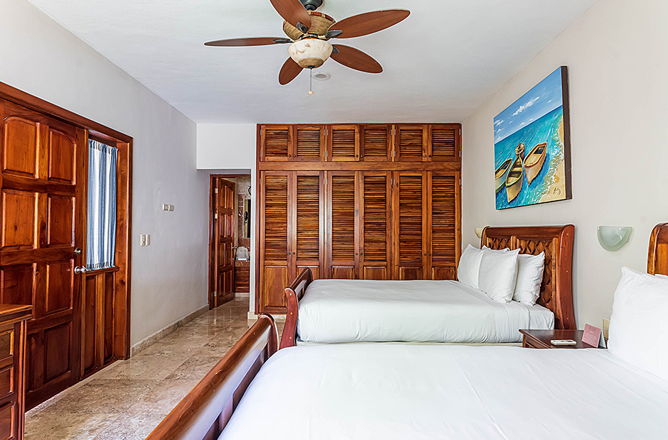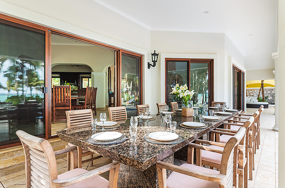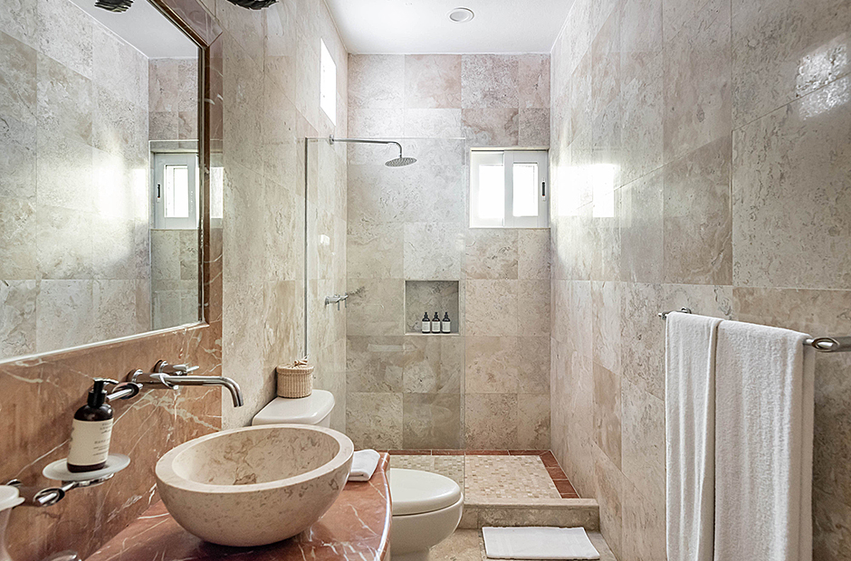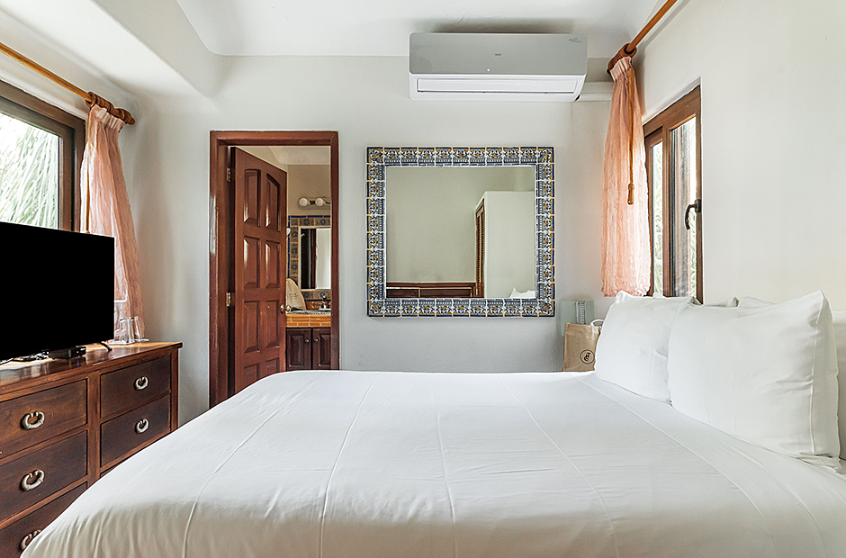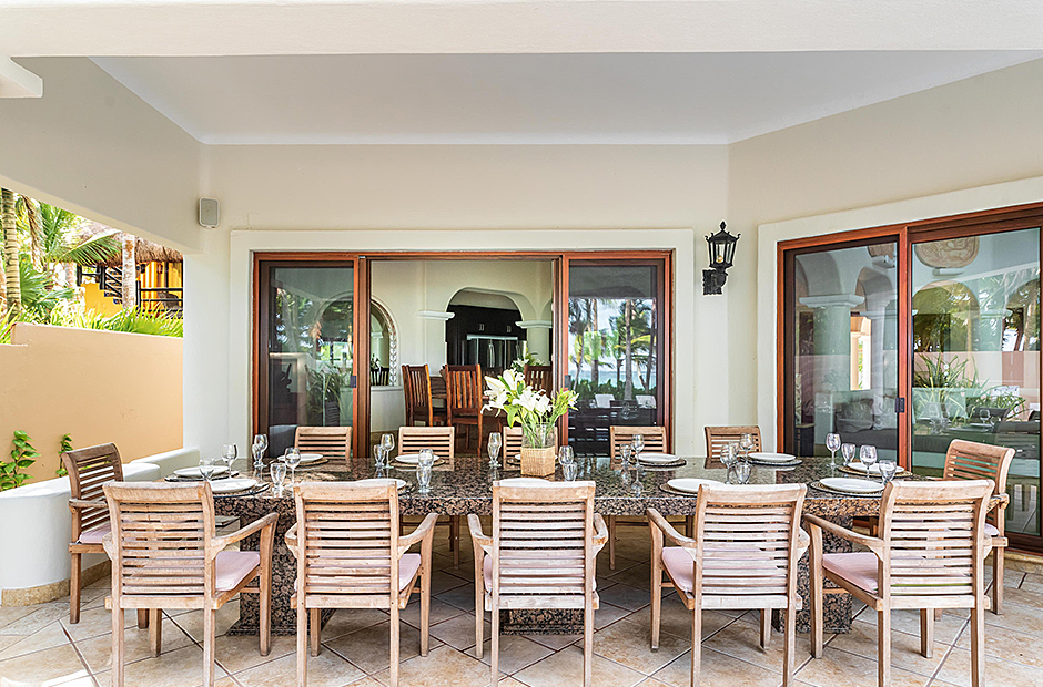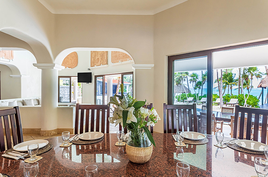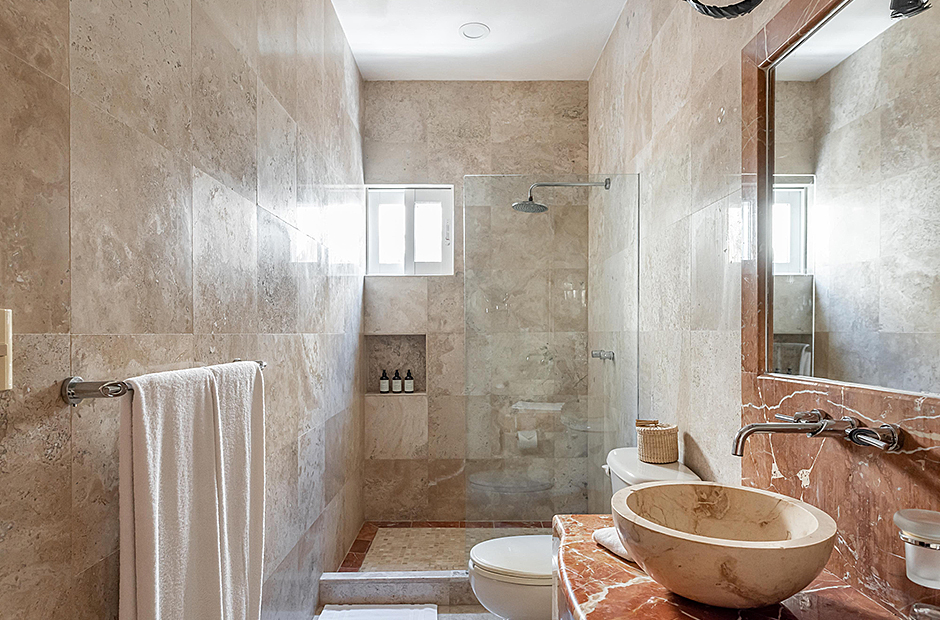 Each of the nine bedrooms are equipped with ceiling fans, satellite TV, a DVD player, and a security safe. The villas decor was inspired by Mexican architecture and craftsmanship. Every bedroom has its own private luxurious marble bathroom and the master bathroom has a Jacuzzi tub with an incredible view of the Caribbean.