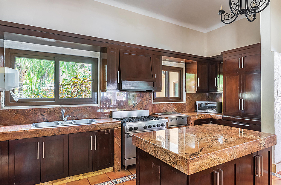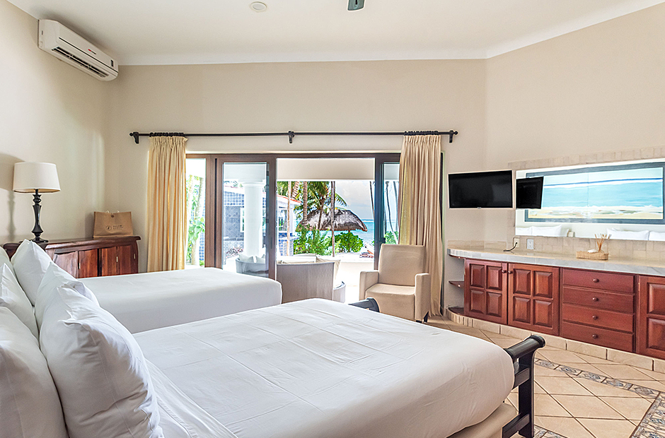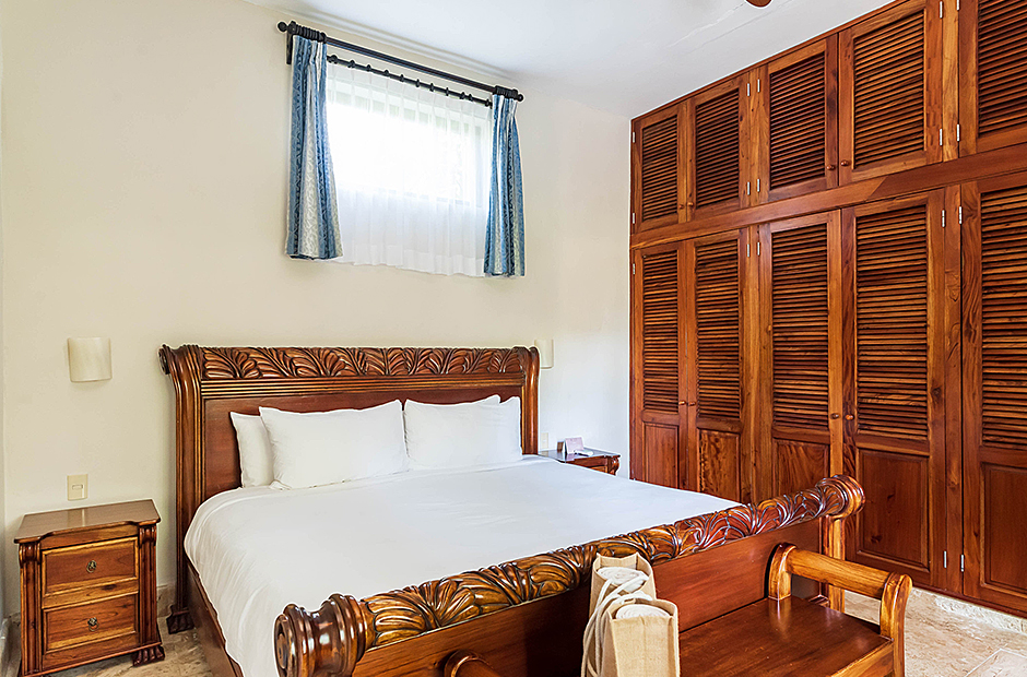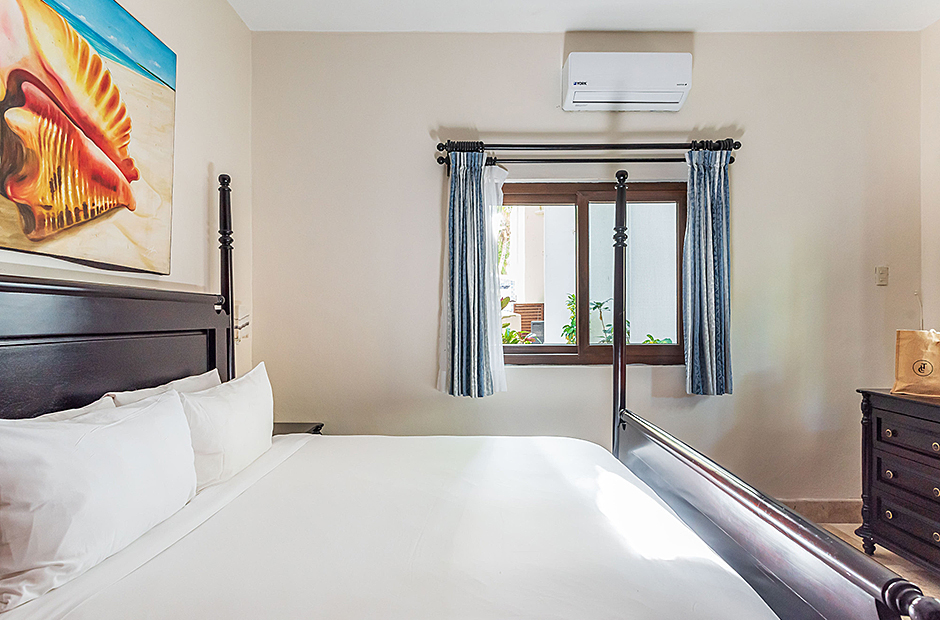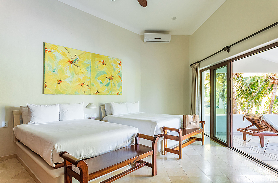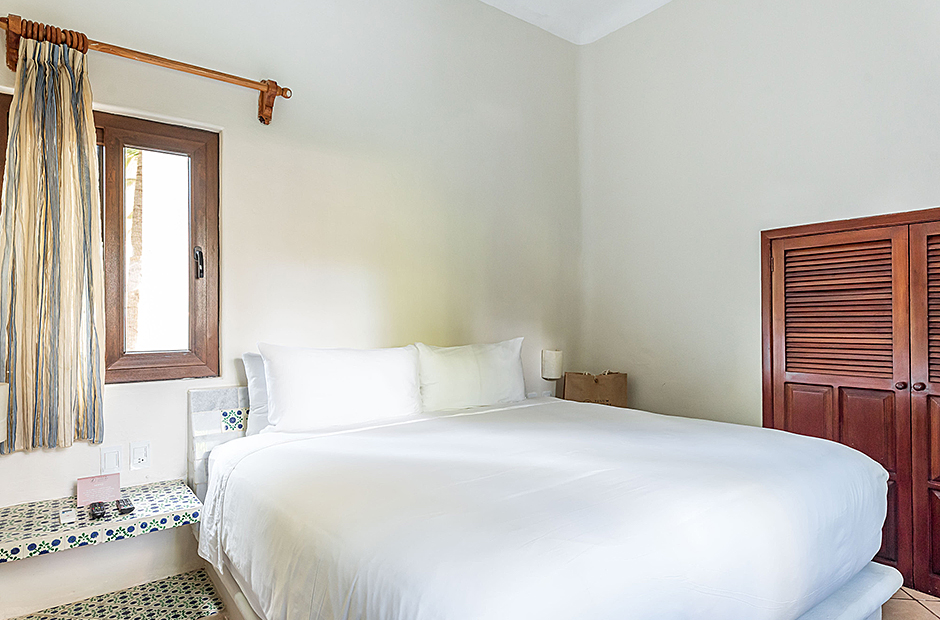 There are five artistically designed, air-conditioned bedrooms with 14-foot ceilings inside the villa; two bedrooms are furnished with two queen-size beds, two bedrooms are furnished with one king-size bed and one bedroom is furnished with one queen-size bed. There are also four lovely guesthouses located outside; two of the guesthouses are furnished with two king-size beds and the two other guesthouses each have one king-size bed.