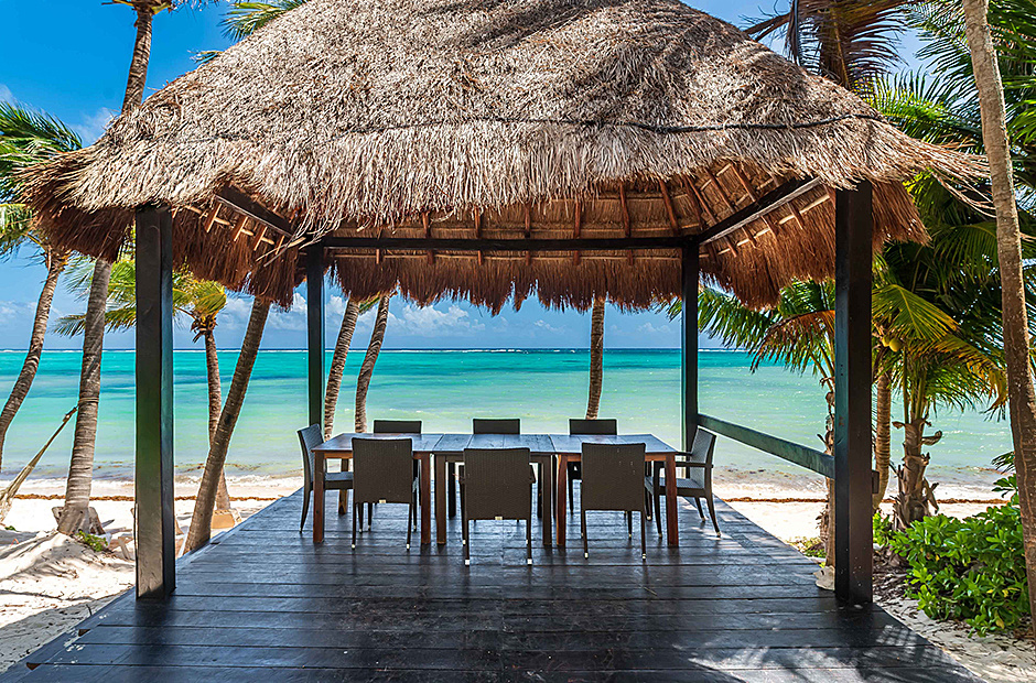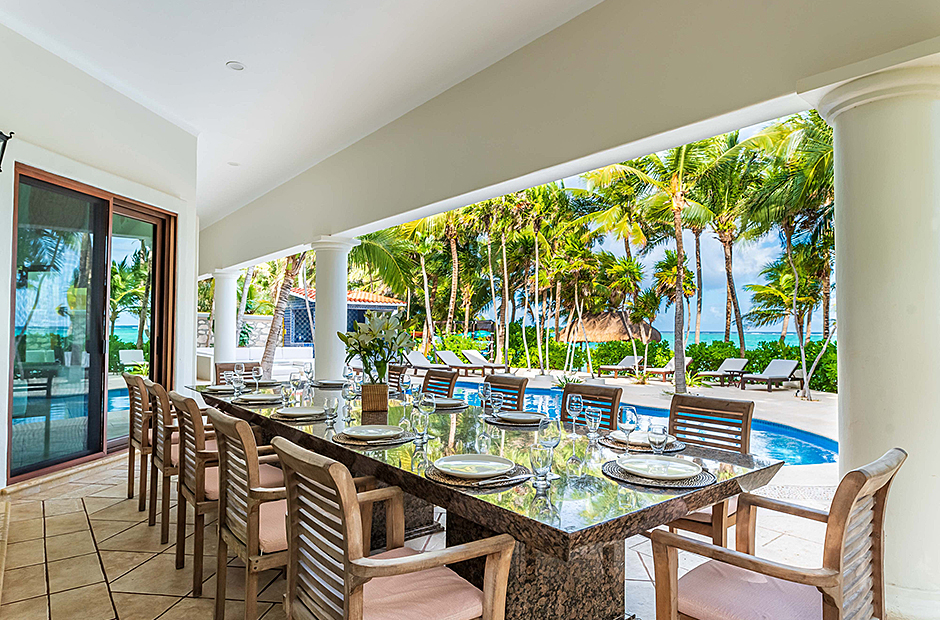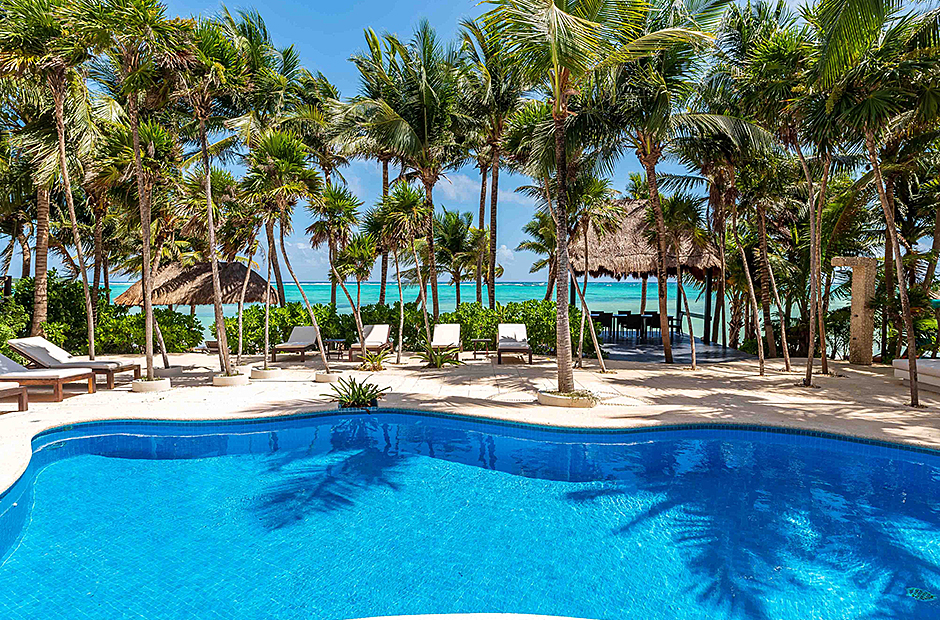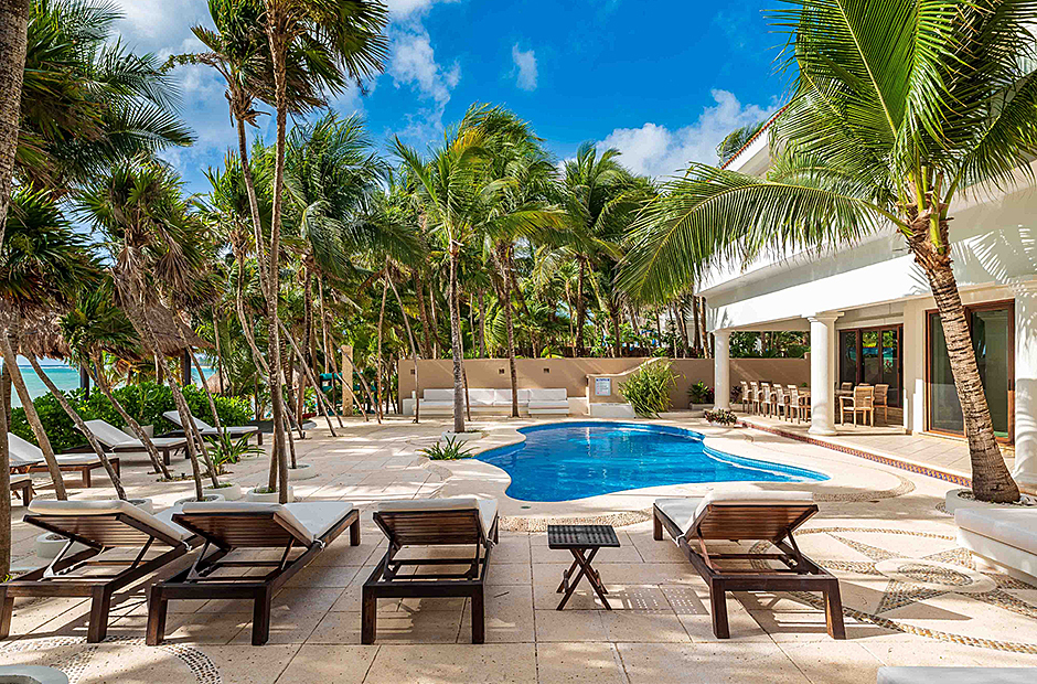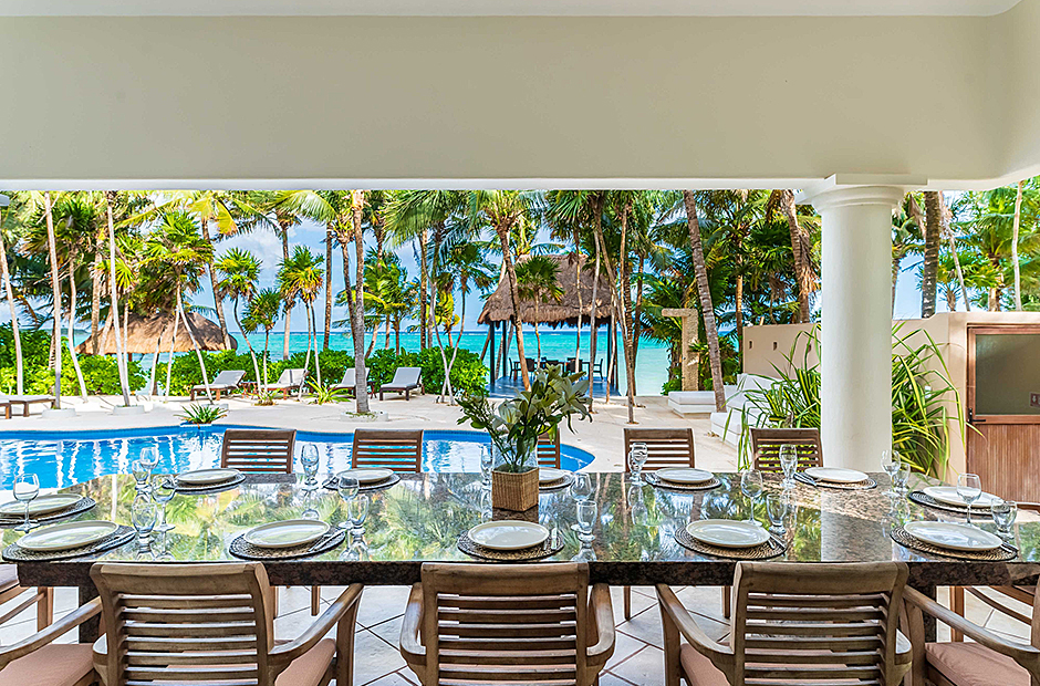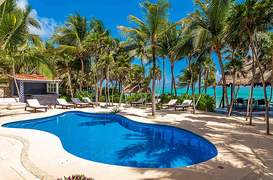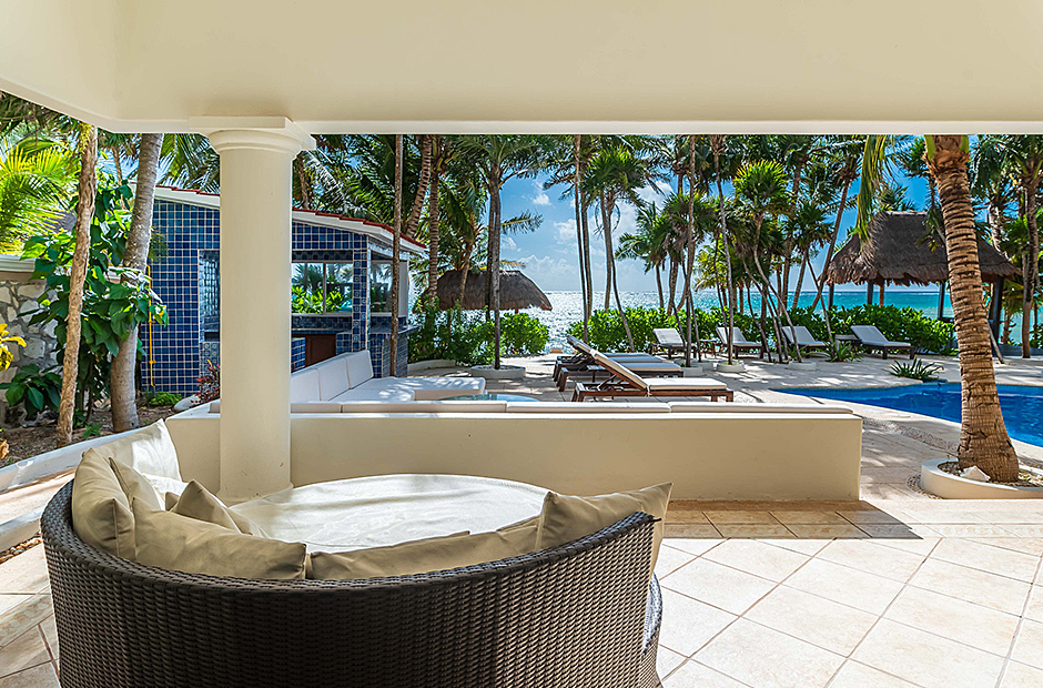 The villa is secluded and incredibly spacious, a beachfront paradise home that charms its guests with its beauty, comfort and design. This is an exclusive property located on 80 feet of the private, white, sandy beaches of Tankah on Soliman Bay in the Caribbean, the world's second longest coral reef, home for colorful tropical fish and many varieties of coral and sea plants. Its spacious living room offers a 30-foot ceiling, an impressive half-circle lounger that can seat its guests comfortably with a spectacular view of the pool and the beach, which is ideal for relaxing and entertaining. The pool area is also equipped with an outside shower for your comfort. Free internet access is available, which makes it ideal for modern vacationers.