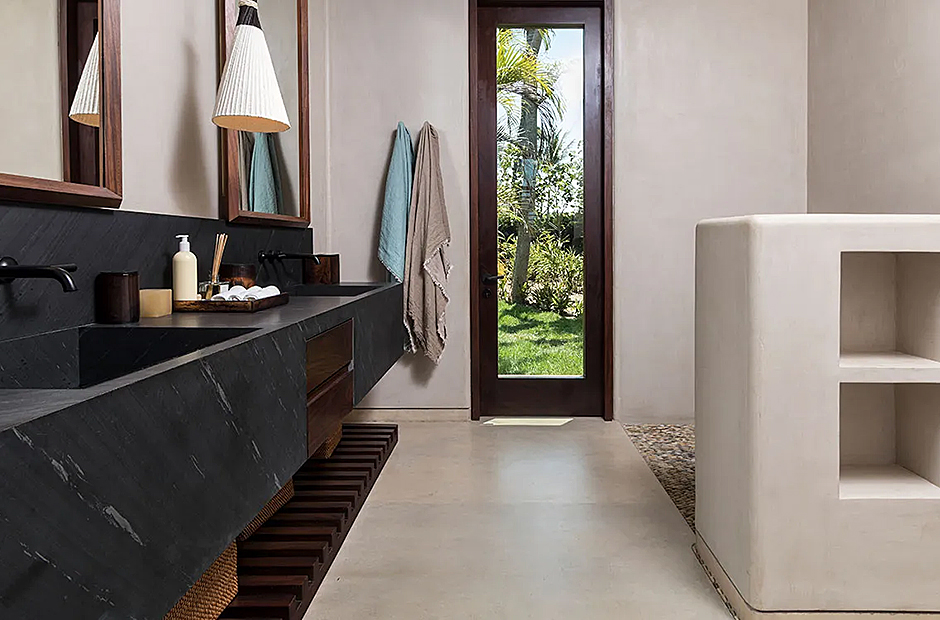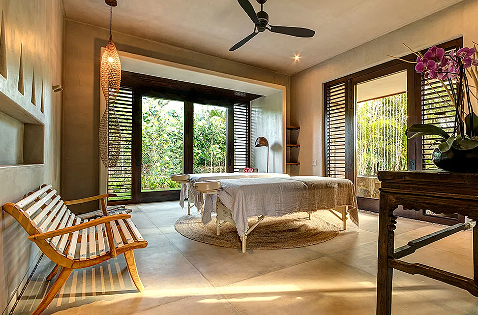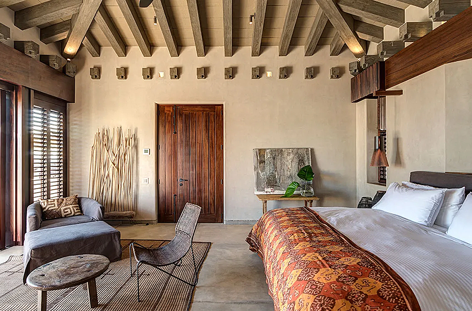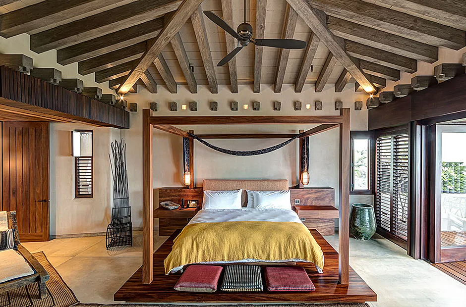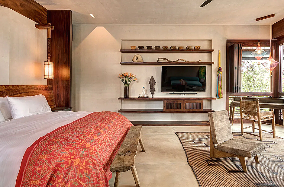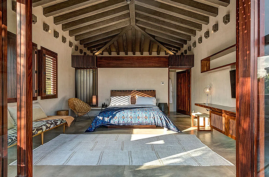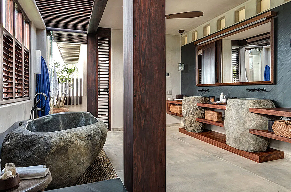 The bedrooms within the villa are lavishly furnished with rich, dark-hued woods, adorning various bespoke pieces of furniture. Luxurious linens adorn all beds, inviting you to unwind in comfort at the end of each day. Each bedroom is complemented by an en-suite bathroom featuring exquisitely crafted stone-carved washbasins and bathtubs.