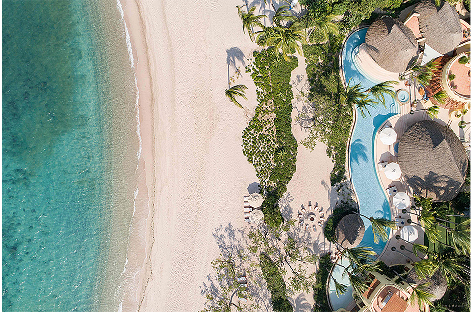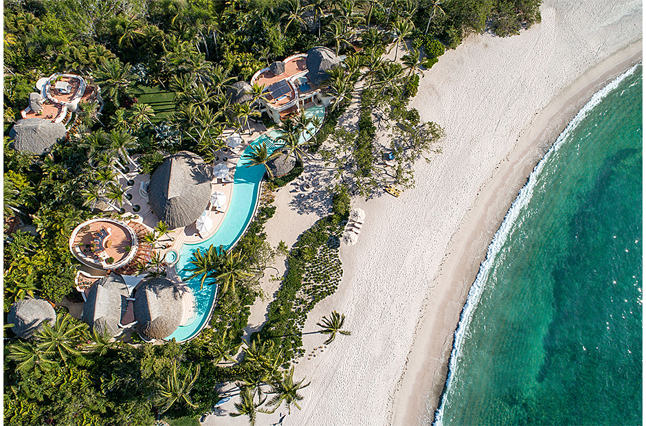 Reminiscent of a lively tropical village, this sprawling oceanfront villa –featured in an Amazon special on epic villas – was designed for basking in the lush scenery and relishing one of the best beaches in sophisticated Punta Mita.