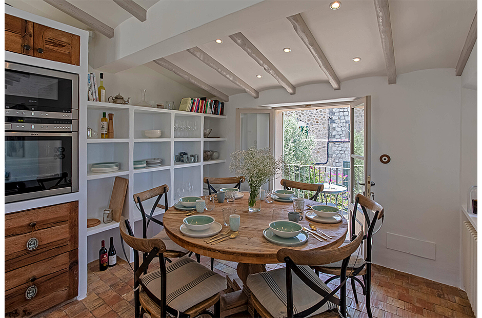 The villa’s well-equipped kitchen offers everything you need for self-catering, including a sunny breakfast room that opens to a small, furnished terrace.