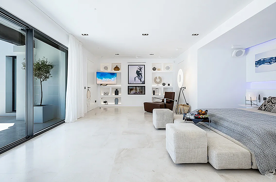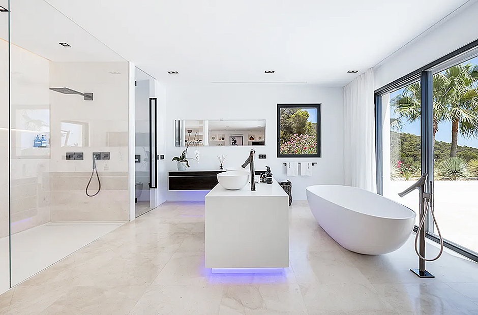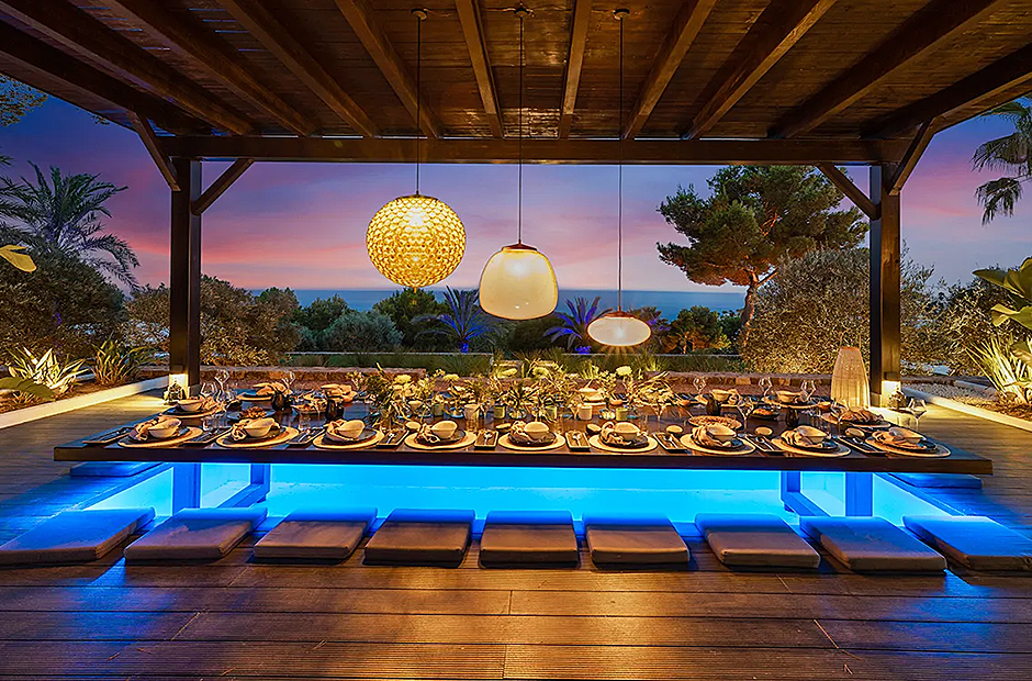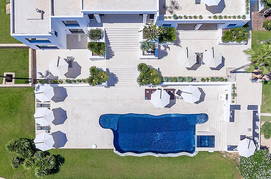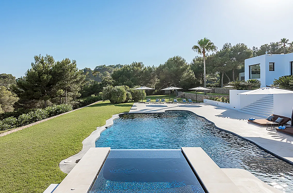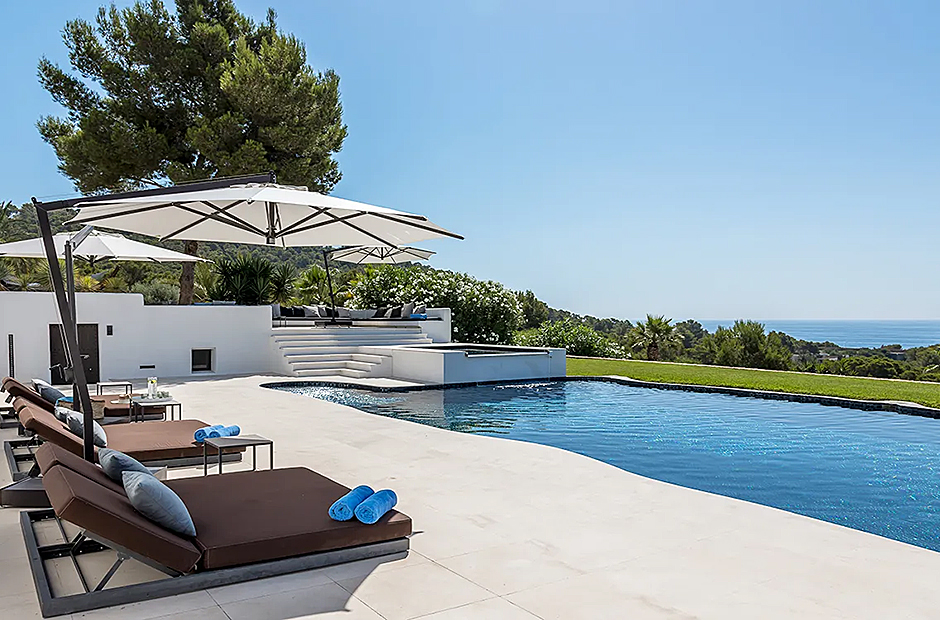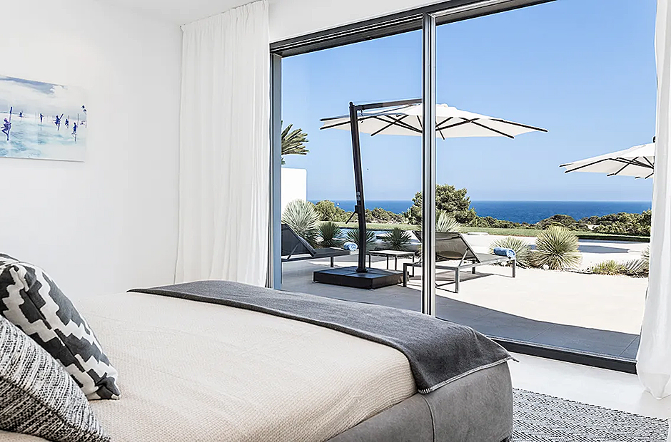 Set high on the hillside in Cap Martinet, this villa offers unrivalled sea views and guaranteed privacy. The villa ensures the best of both worlds with its easy access to Ibiza Town while being only 450m from the Mediterranean Sea. What makes this villa unique is its dedication in ensuring each space, whether indoor or outdoor, is equipped with every luxury.