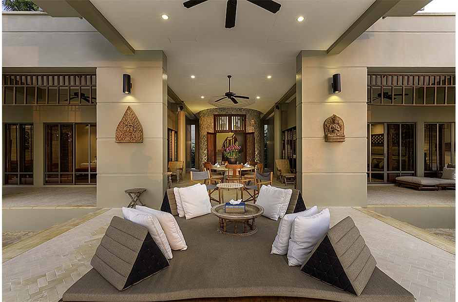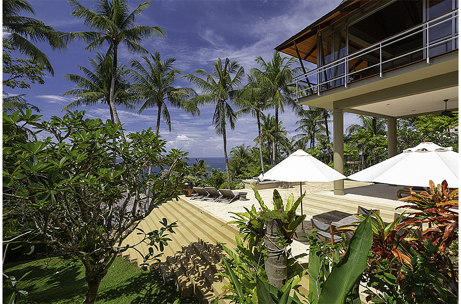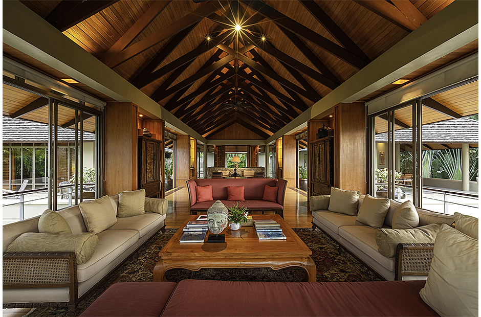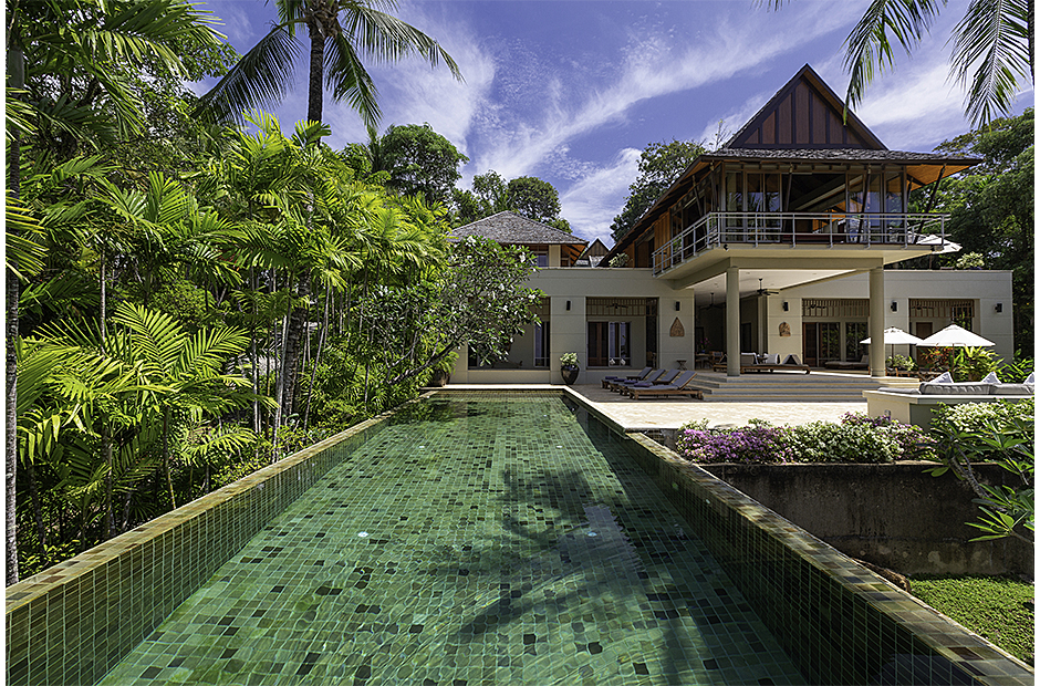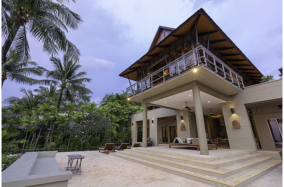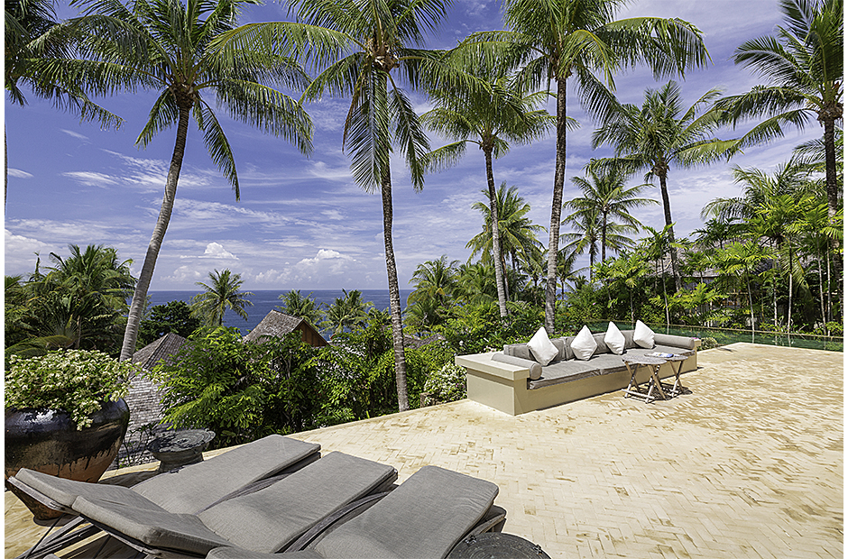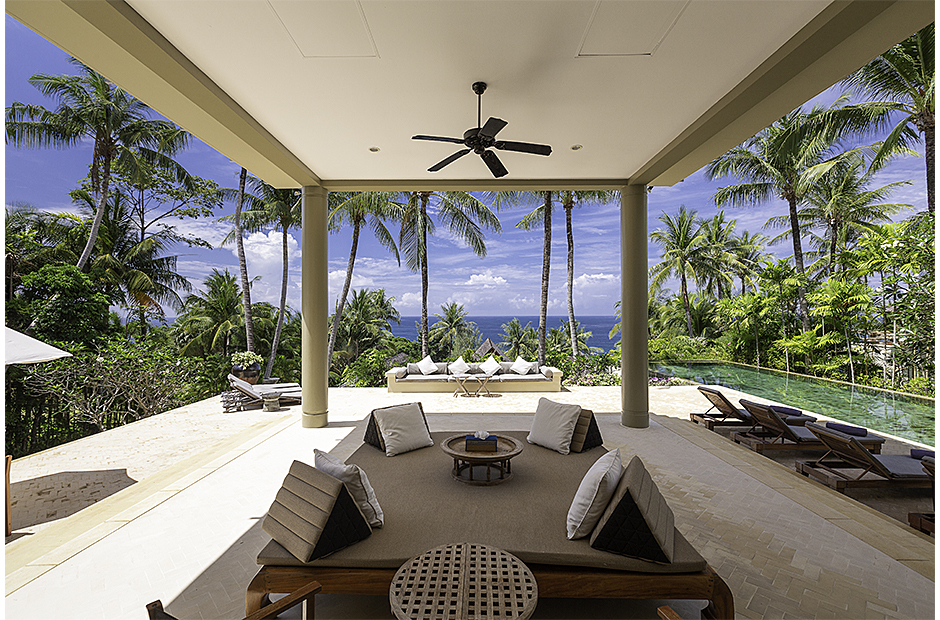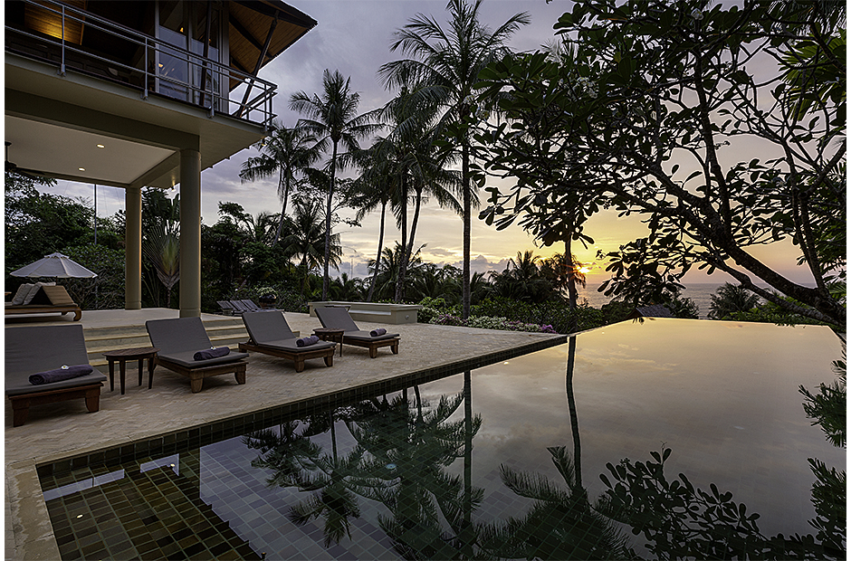 Enter through the upper level and relish the high ceilings and three sliding-glass walls of the formal living room and its wraparound balcony, perfect for gazing over your kingdom - cocktail in hand. Enjoy lavish Thai meals prepared by the villa chef in the tropical dining room with seating for twelve. Descending down a spiral staircase, protected by a stone wall, leave formalities behind and discover a world of relaxation. Outside sit on a daybed within the shaded living sala or dine out, and let tropical breezes wash over. Take a dip within the infinity pool that extends past the deck and seemingly disappears into the trees. When you need a respite from outdoor living, step back into the game room, which is equipped with two lounge areas and pool table, making it the perfect place for adult and child alike to spend the evening hours.