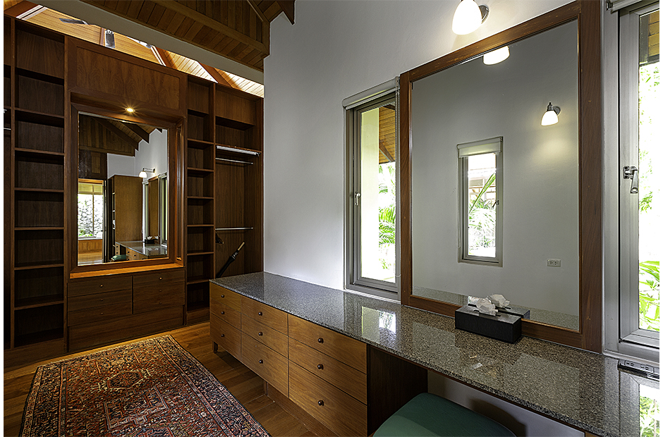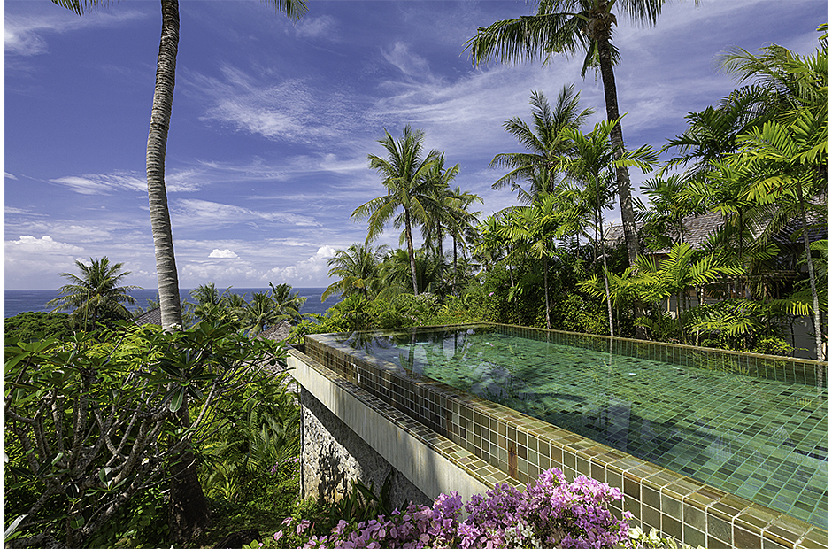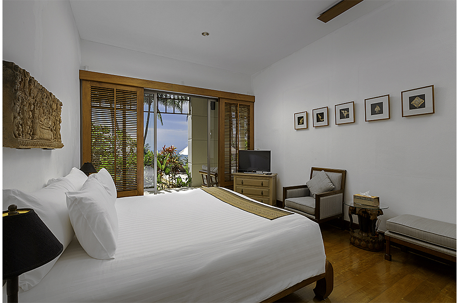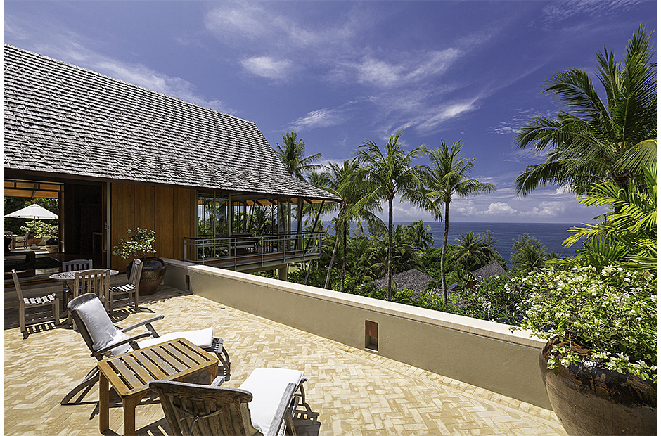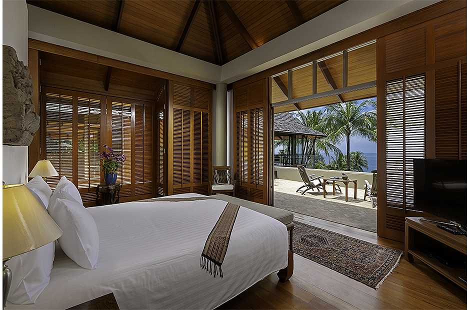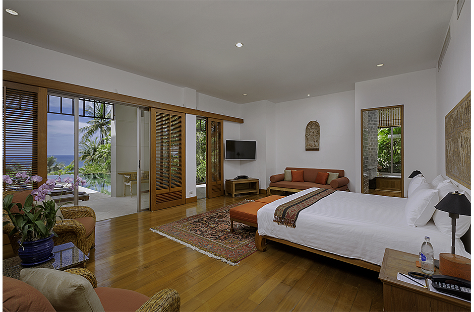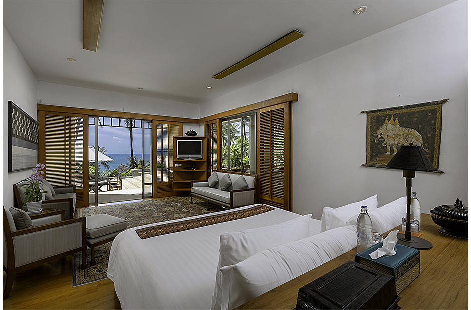 Enter through the upper level and relish the high ceilings and three sliding-glass walls of the formal living room and its wraparound balcony, perfect for gazing over your kingdom - cocktail in hand. Enjoy lavish Thai meals prepared by the villa chef in the tropical dining room with seating for twelve. Descending down a spiral staircase, protected by a stone wall, leave formalities behind and discover a world of relaxation. Outside sit on a daybed within the shaded living sala or dine out, and let tropical breezes wash over. Take a dip within the infinity pool that extends past the deck and seemingly disappears into the trees. When you need a respite from outdoor living, step back into the game room, which is equipped with two lounge areas and pool table, making it the perfect place for adult and child alike to spend the evening hours.