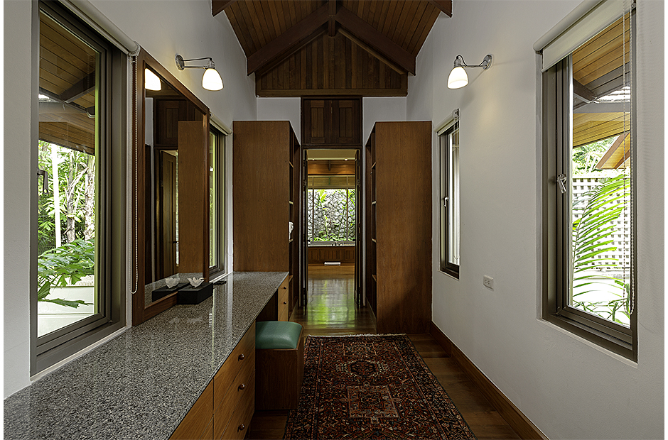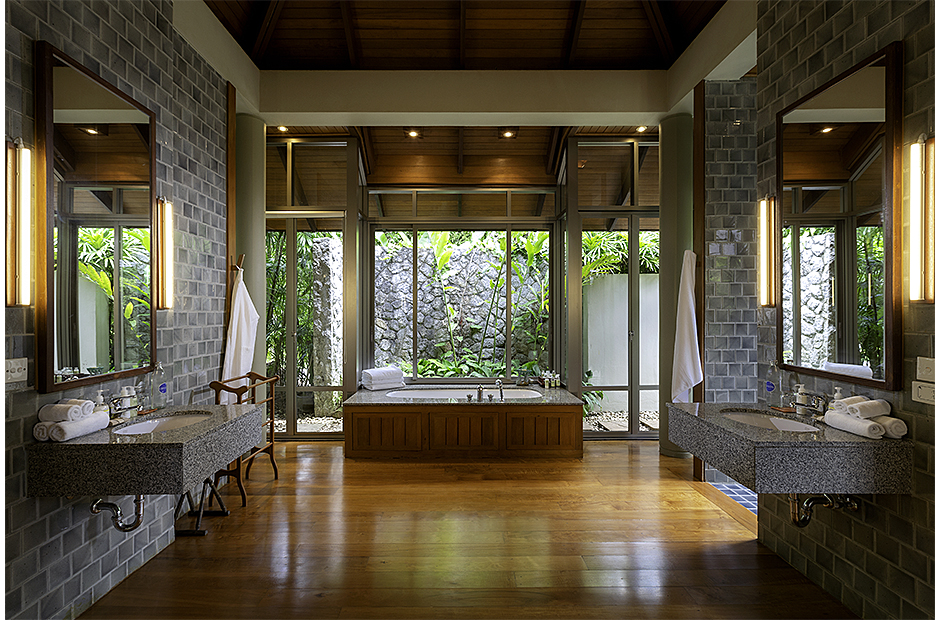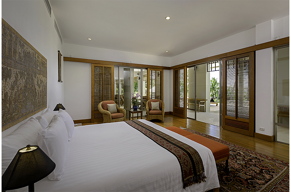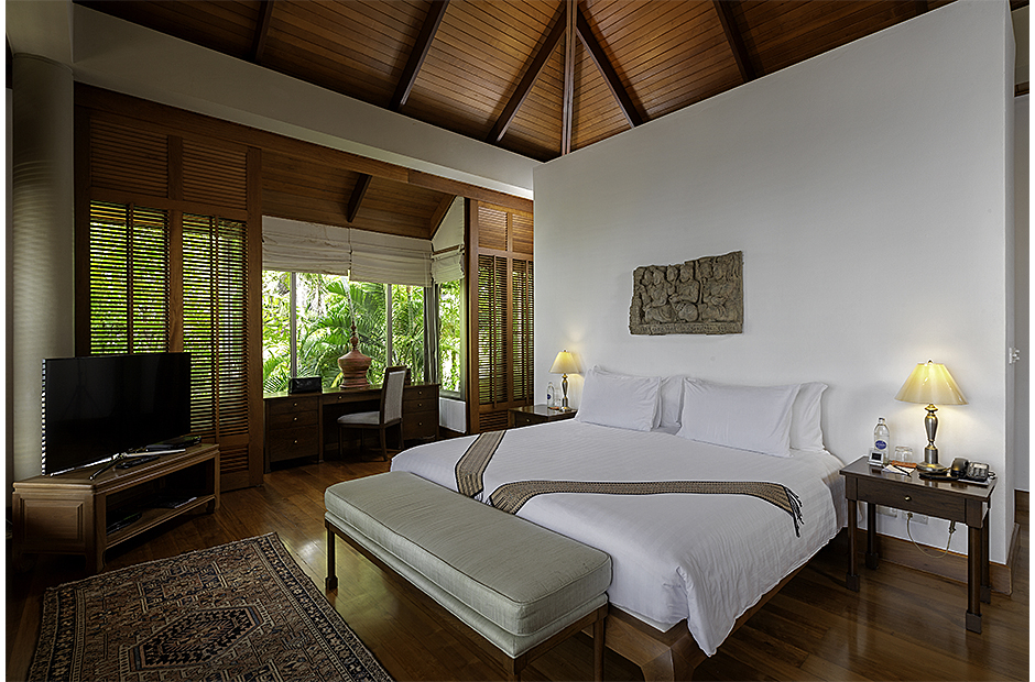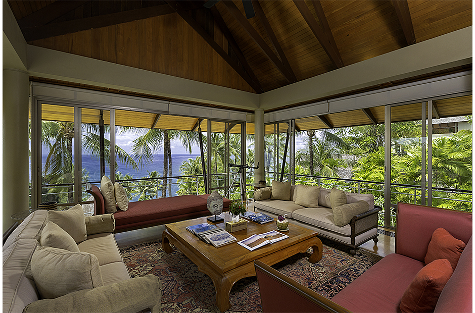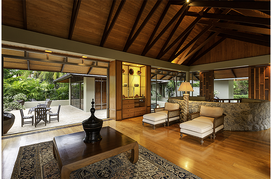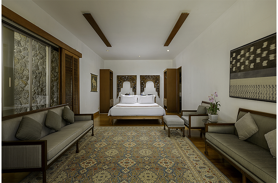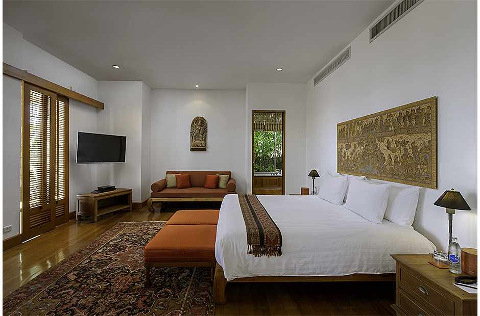 Enter through the upper level and relish the high ceilings and three sliding-glass walls of the formal living room and its wraparound balcony, perfect for gazing over your kingdom - cocktail in hand. Enjoy lavish Thai meals prepared by the villa chef in the tropical dining room with seating for twelve. Descending down a spiral staircase, protected by a stone wall, leave formalities behind and discover a world of relaxation. Outside sit on a daybed within the shaded living sala or dine out, and let tropical breezes wash over. Take a dip within the infinity pool that extends past the deck and seemingly disappears into the trees. When you need a respite from outdoor living, step back into the game room, which is equipped with two lounge areas and pool table, making it the perfect place for adult and child alike to spend the evening hours.