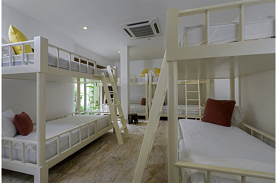The bedrooms of this villa are spread across the two levels. The large master bedroom rests on the upper floor and features a walk-in wardrobe and luxurious bathroom featuring a wall of windows, letting in the sun, but retaining privacy. On the lower level, find the remaining bedrooms, each with ensuite bathroom and direct access poolside. Down the hall, the fifth bedroom is a children’s dormitory with four bunks sleeping eight - ideal for sleepovers.