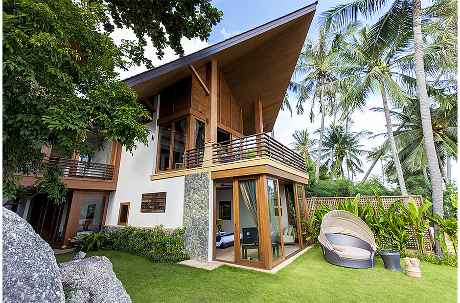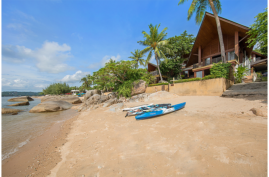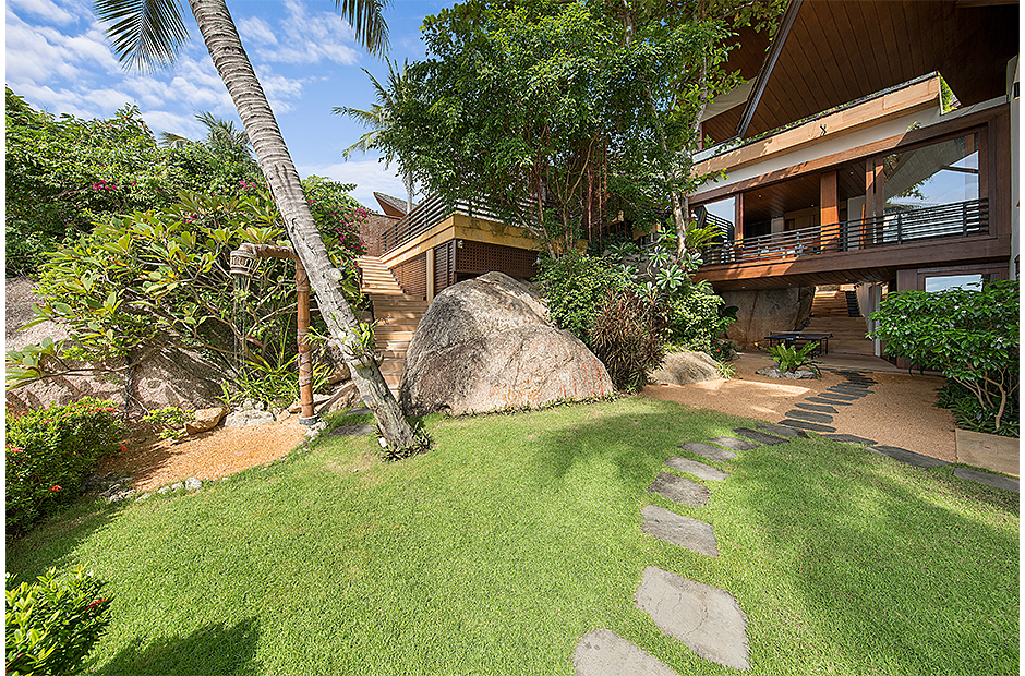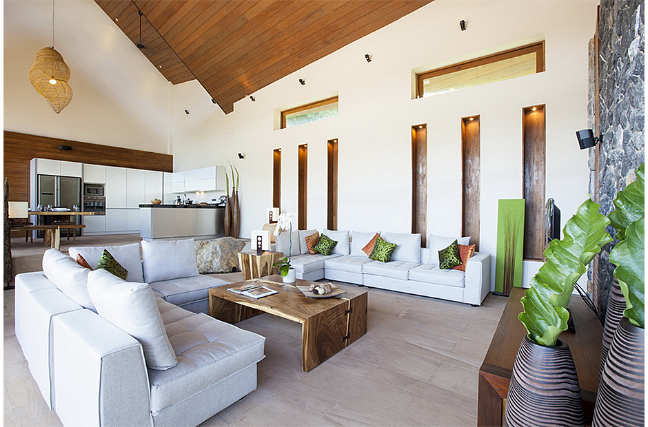 This villa has a dramatic split-level design featuring steep sloped roofs, opulent proportions, and fantastic beach and ocean views. It is able to house 10 guests thanks to its expansive indoor and outdoor spaces, whilst all five guest rooms feature king beds, TVs, dramatic en-suite bathrooms with freestanding bathtubs, as well as stunning sea views.