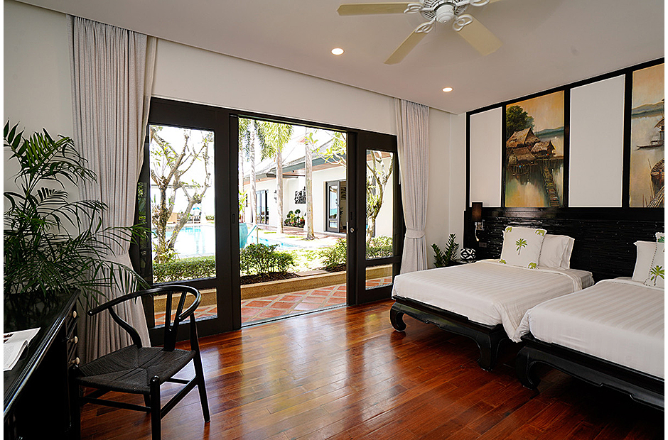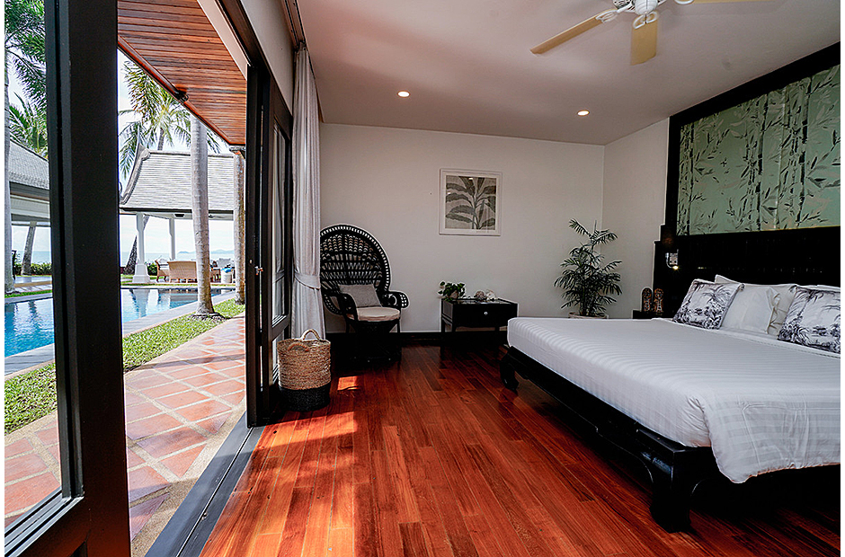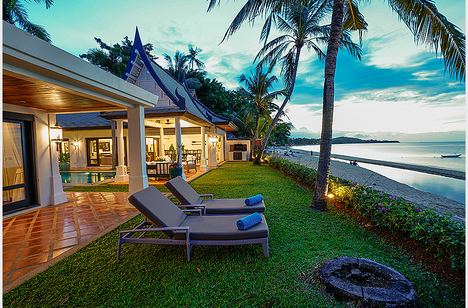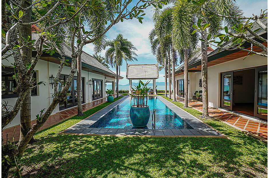 Boasting 25 metres of pristine beach frontage, this contemporary five-bedroom villa features bright and fresh interiors and a family room that can sleep four people. Between the pool and the ocean, a picturesque Thai sala provides outdoor shade.